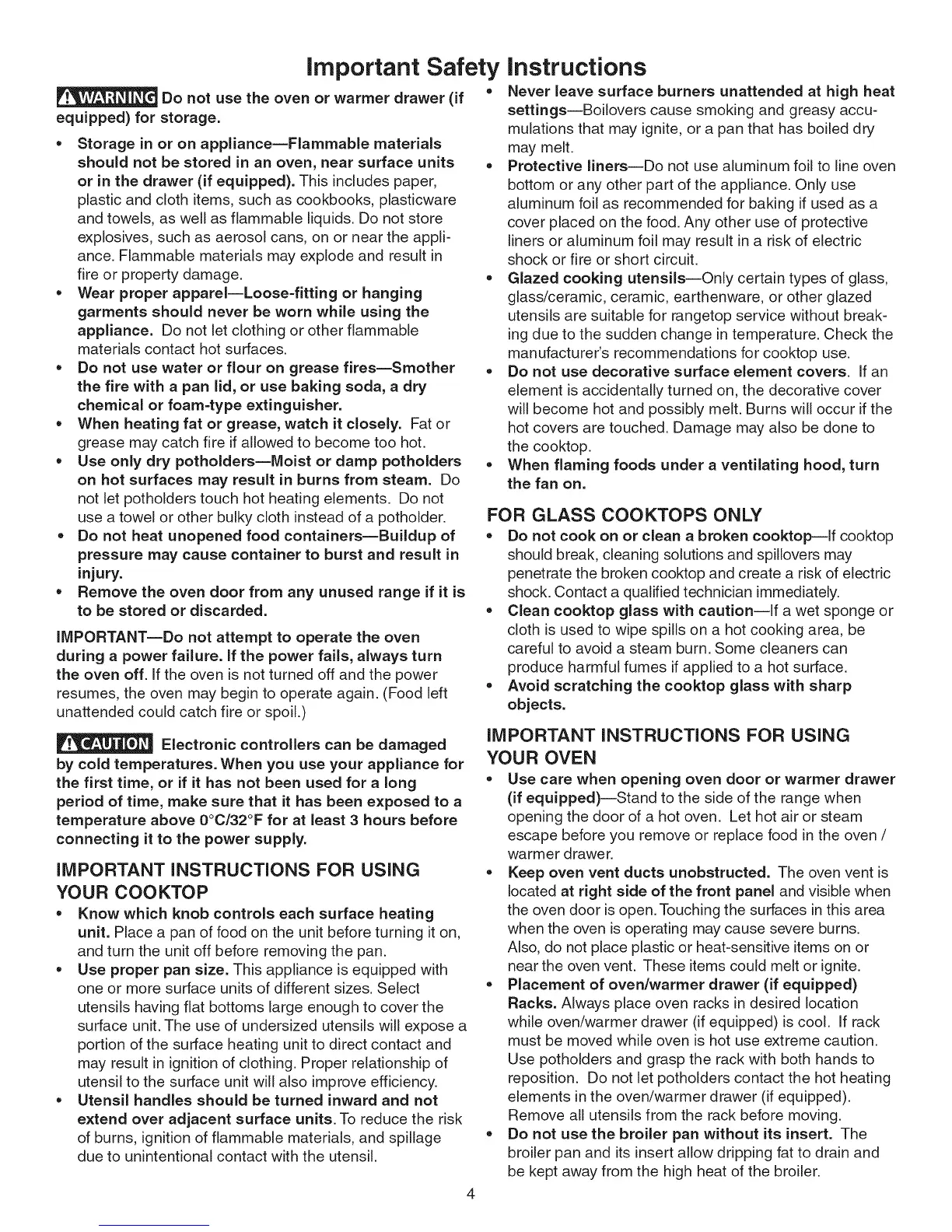,, Do not cook on or clean a broken cooktop--lf cooktop