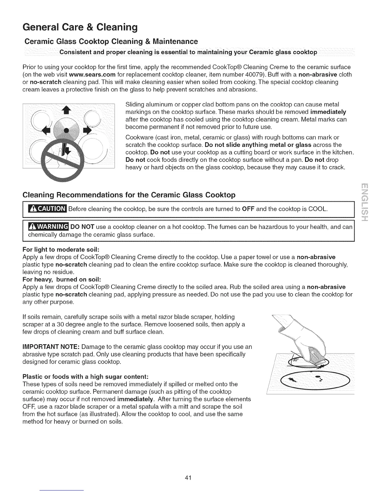 or no-scratch cleaning pad. This will make cleaning easier when soiled from cooking. The special cooktop cleaning