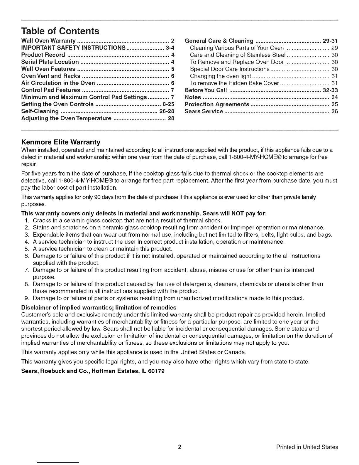 This warranty covers only defects in material and workmanship. Sears will NOT pay for: