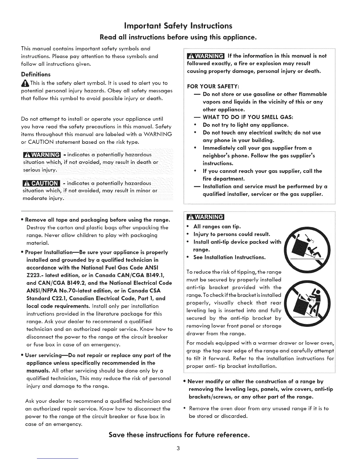 Do not attempt to install or operate your appliance until