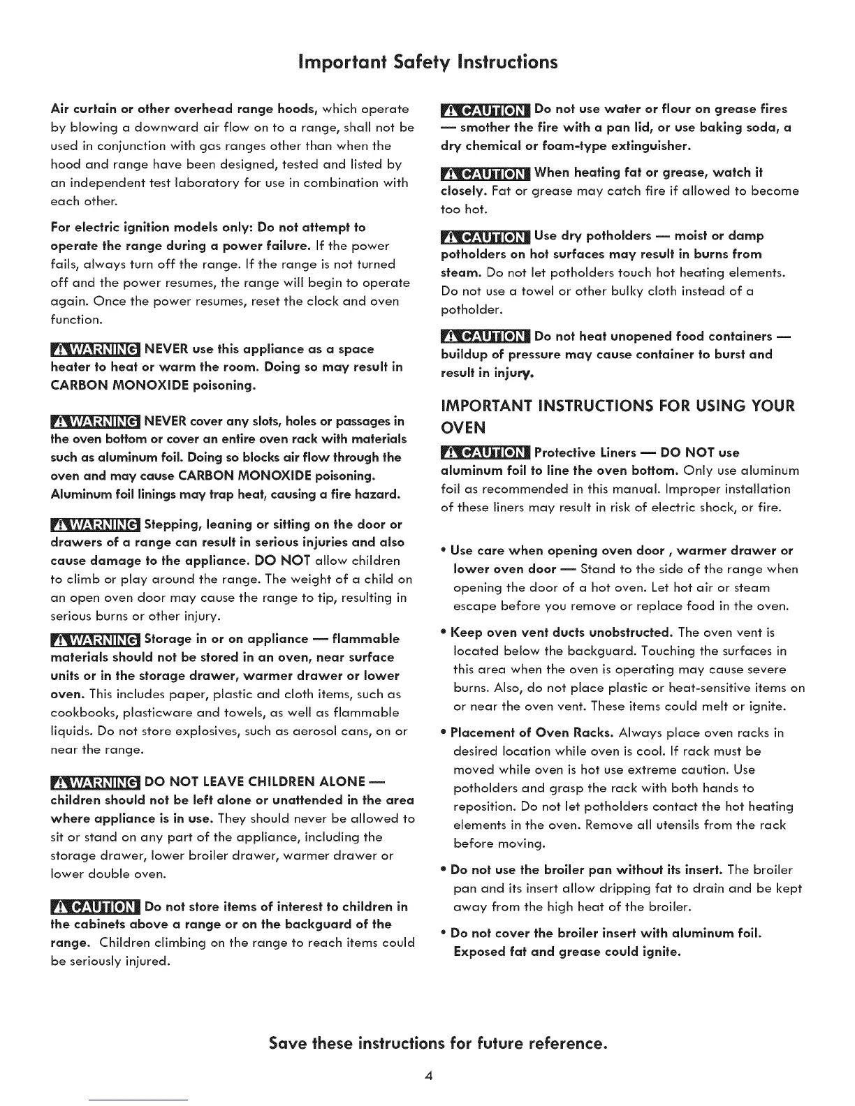 oven and may cause CARBON MONOXIDE poisoning.