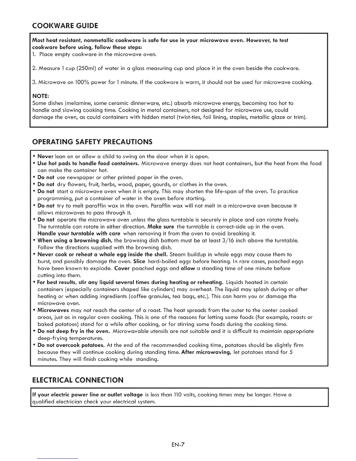 if your electric power llne or outlet voltage is less than 110 volts, cooking times may be longer. Have a