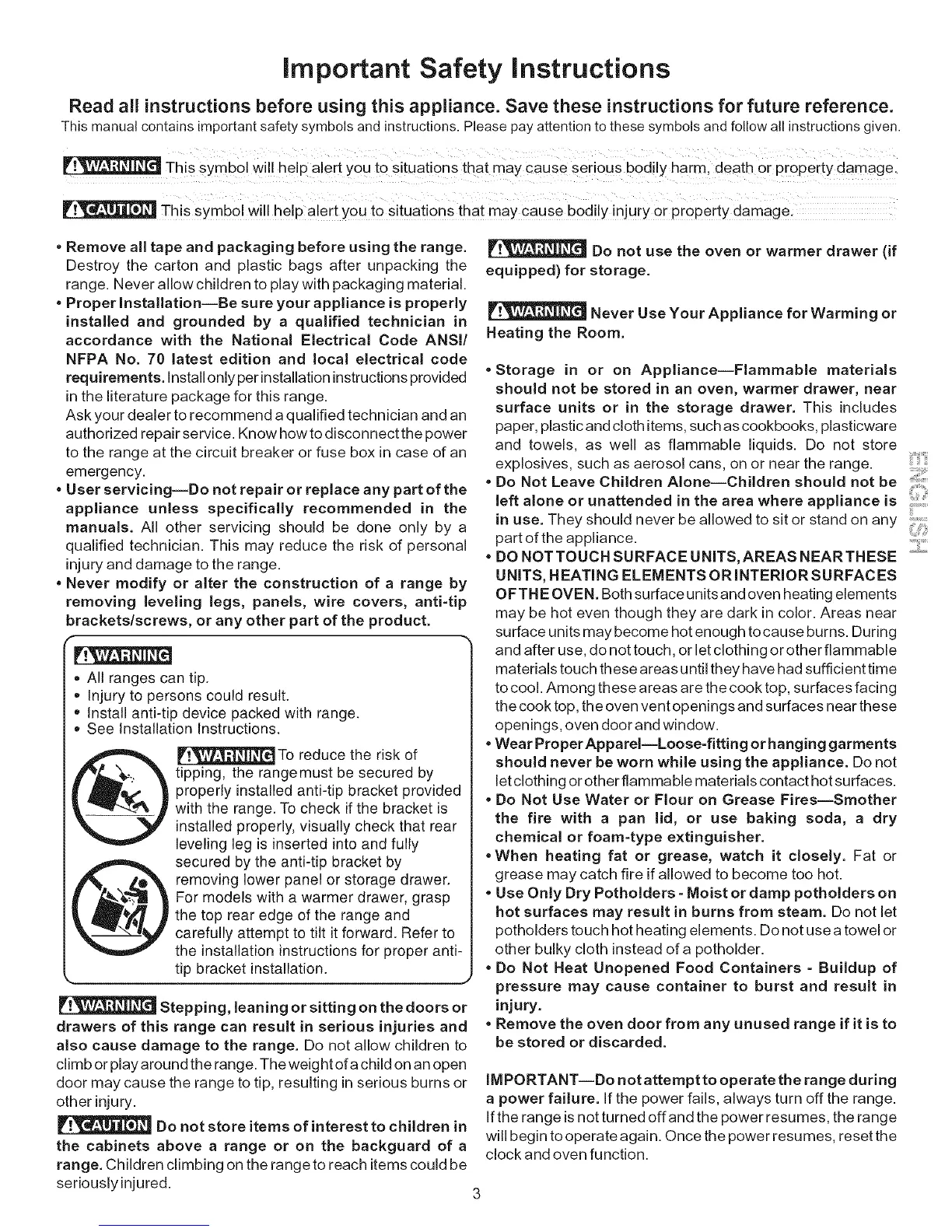 IMPORTANT--Do not attempt to operate the range during