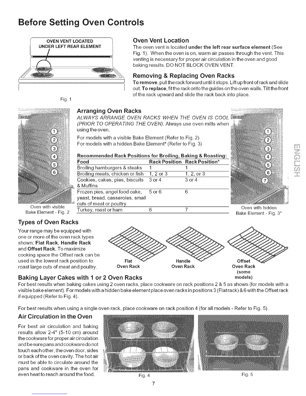 For best results when using a single oven rack, place cookware on rack position 4 (for all models - Refer to Fig. 5).