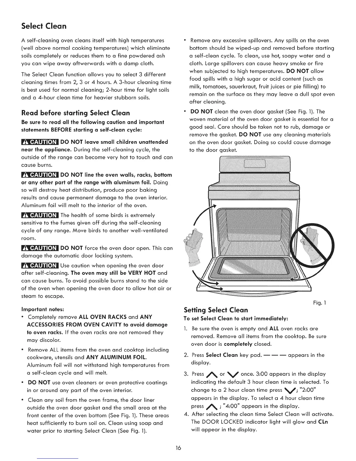 water prior to starting Select Clean (See Fig. 1).