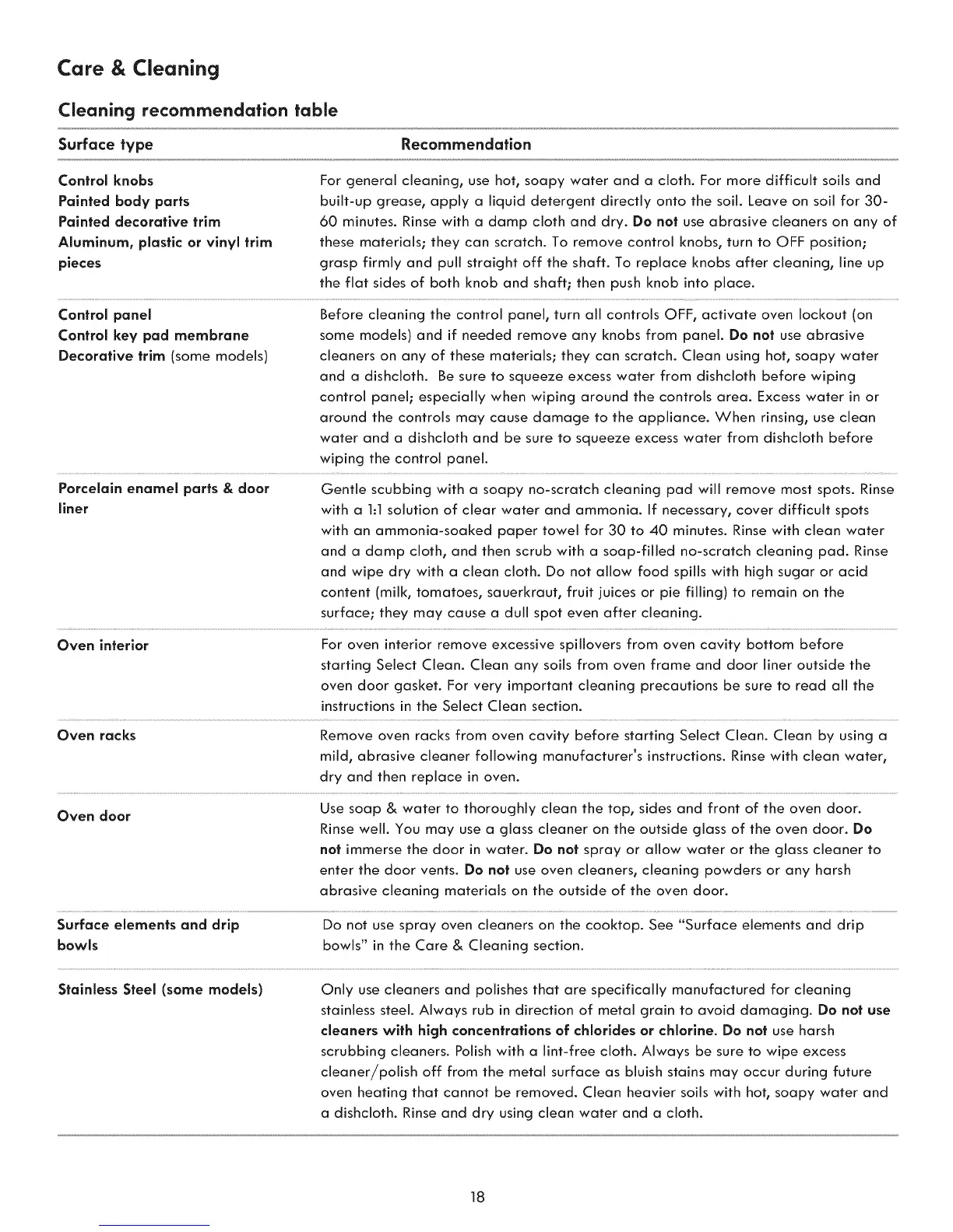 Stainless Steel (some models) Only use cleaners and polishes that are specifically manufactured for cleaning