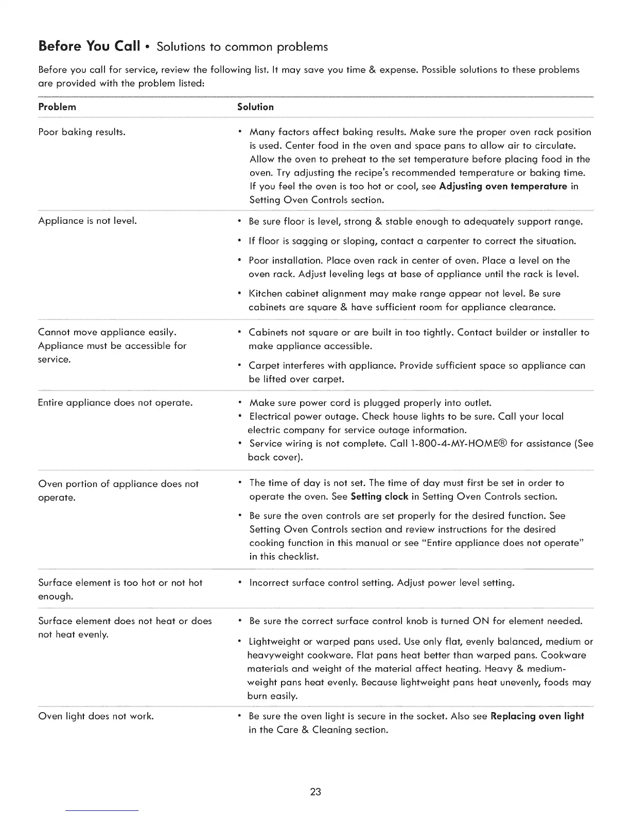 Appliance is not level. * Be sure floor is level, strong & stable enough to adequately support range.