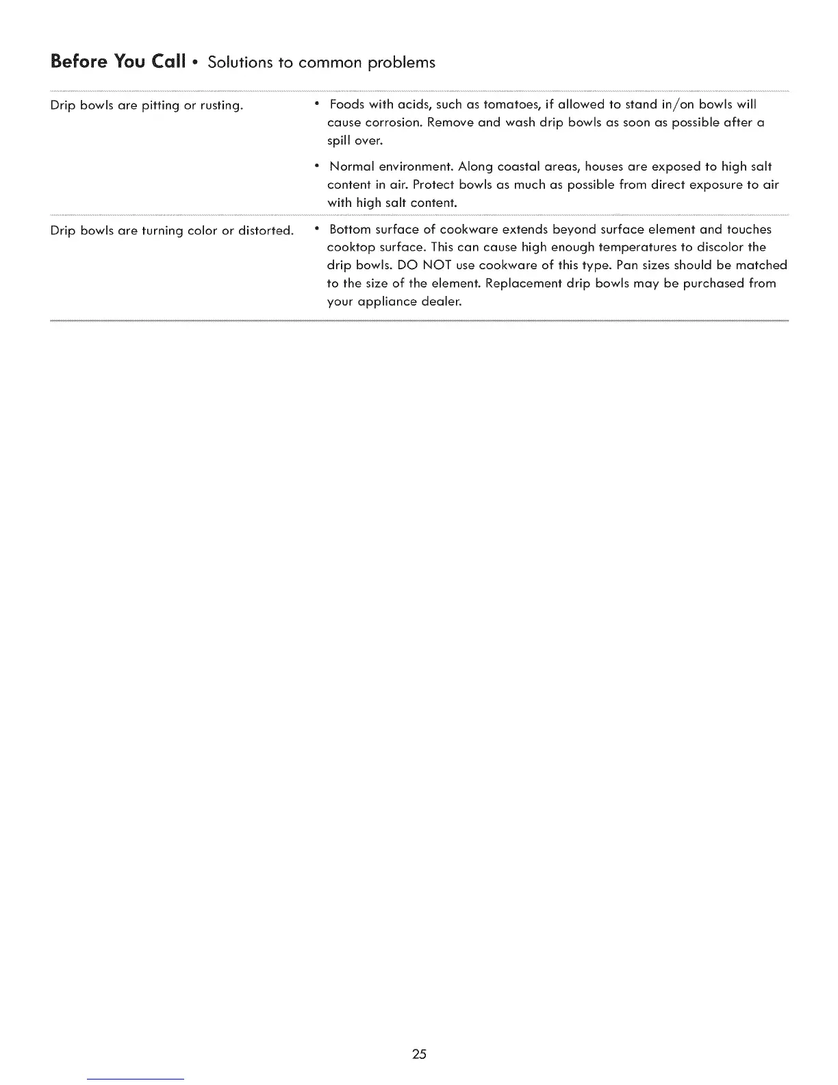 Drip bowls are turning color or distorted. Q Bottom surface of cookware extends beyond surface element and touches