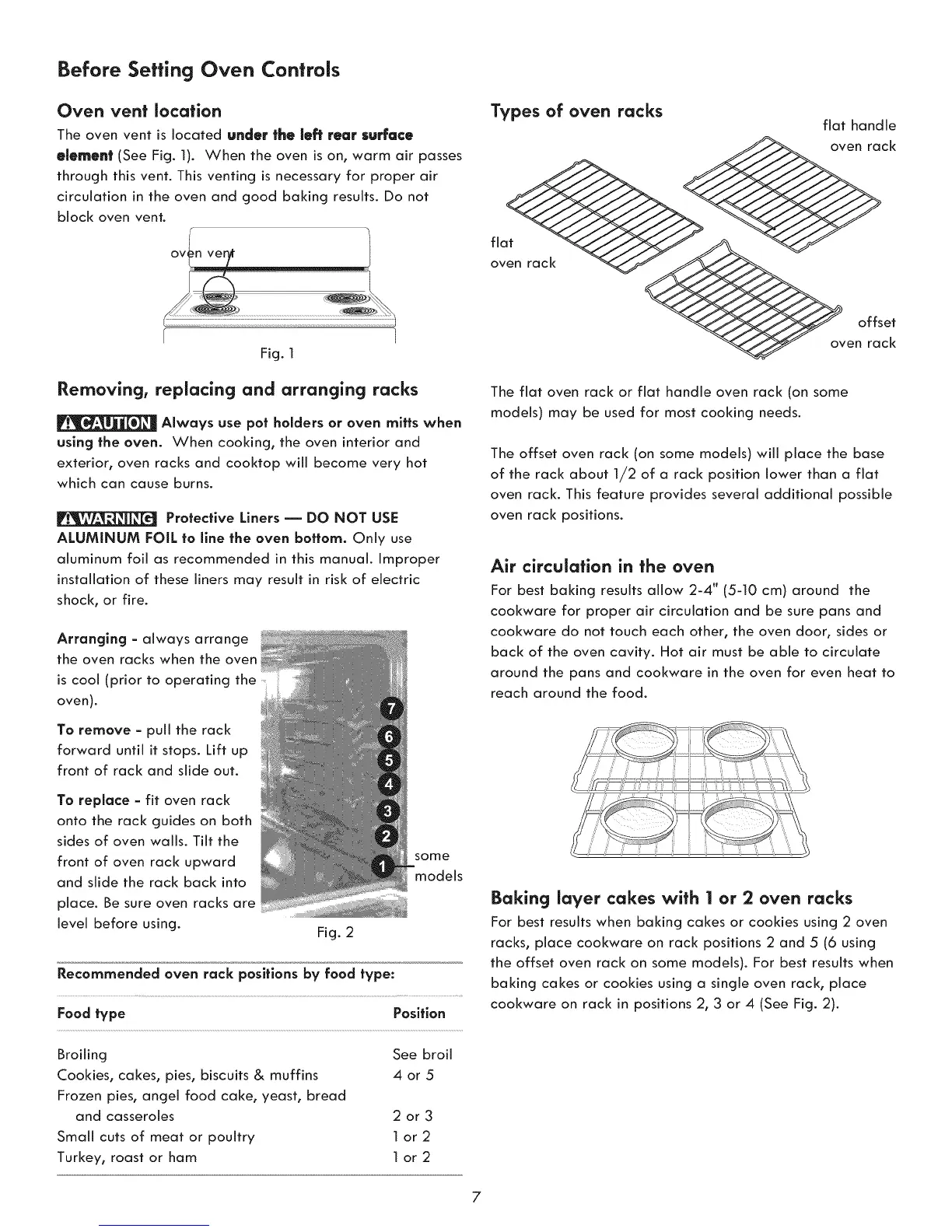 cookware on rack in positions 2, 3 or 4 (See Fig. 2).