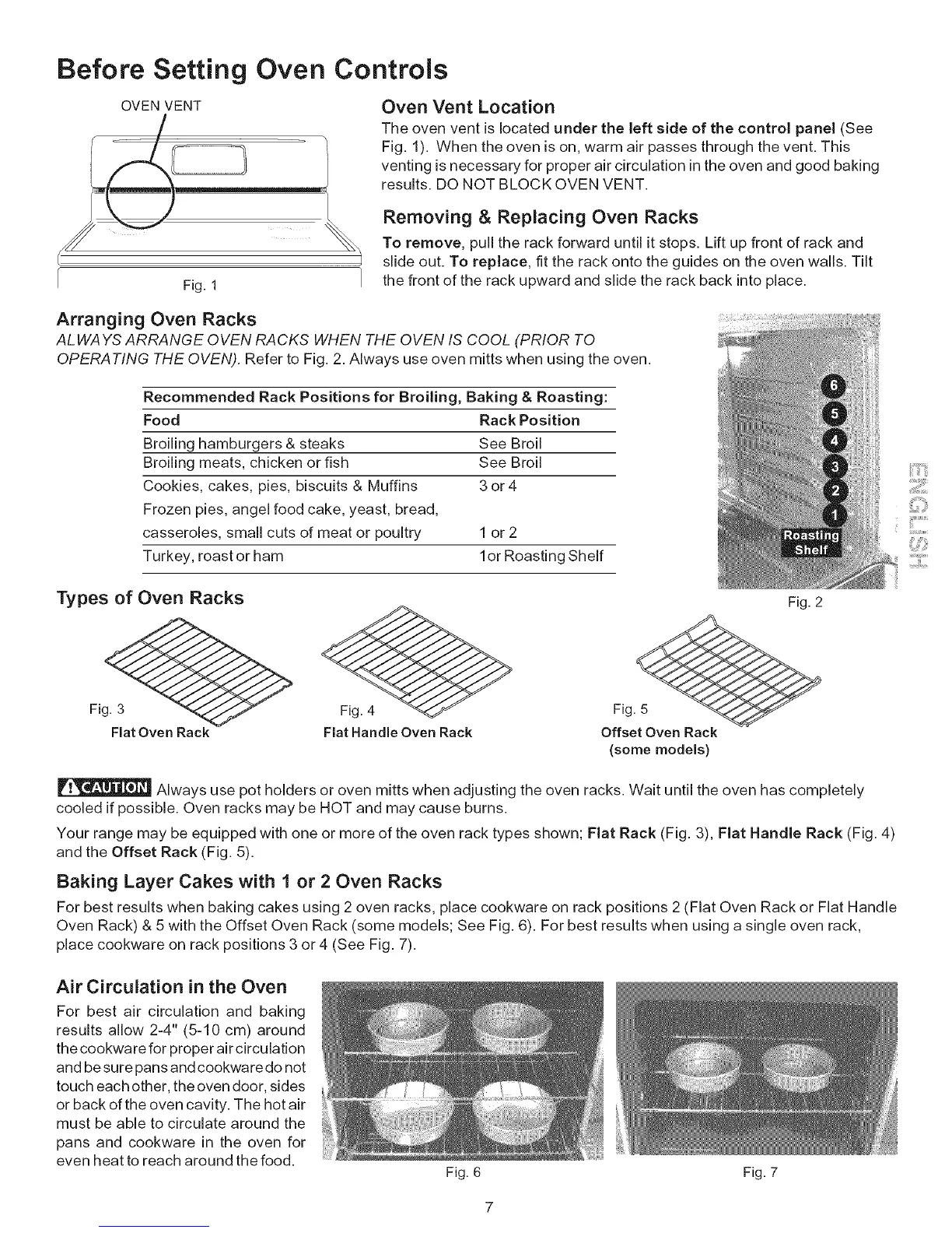 Oven Rack) & 5 with the Offset Oven Rack (some models; See Fig. 6). For best results when using a single oven rack,