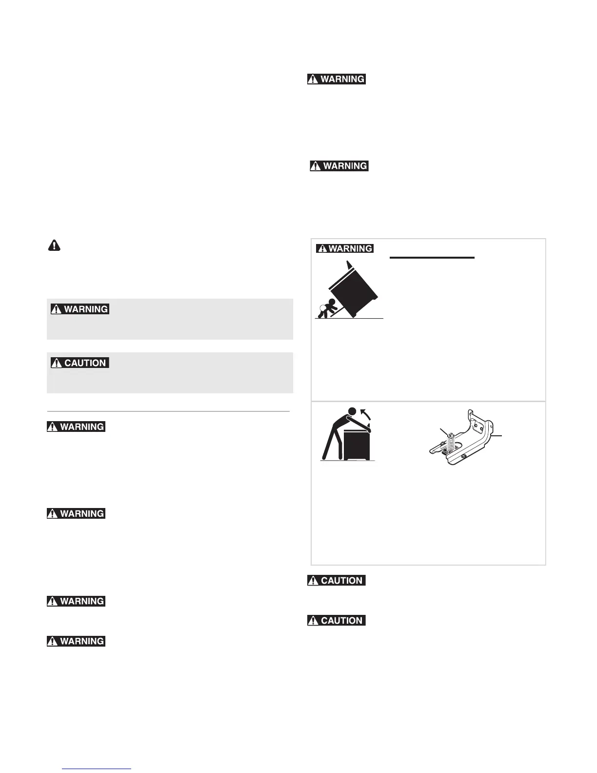 • Ensure the anti-tip device is re-engaged to floor or