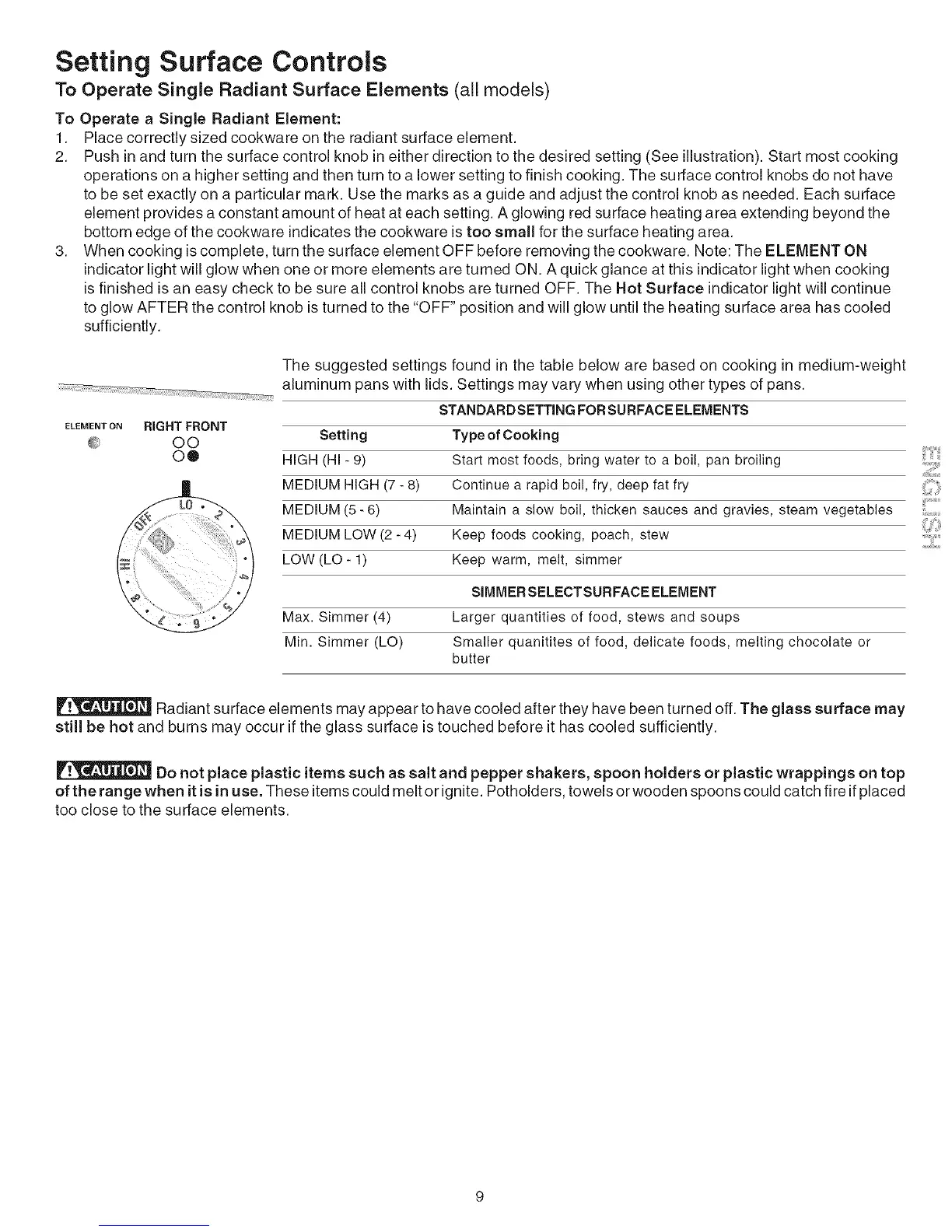 operations on a higher setting and then turn to a lower setting to finish cooking. The surface control knobs do not have