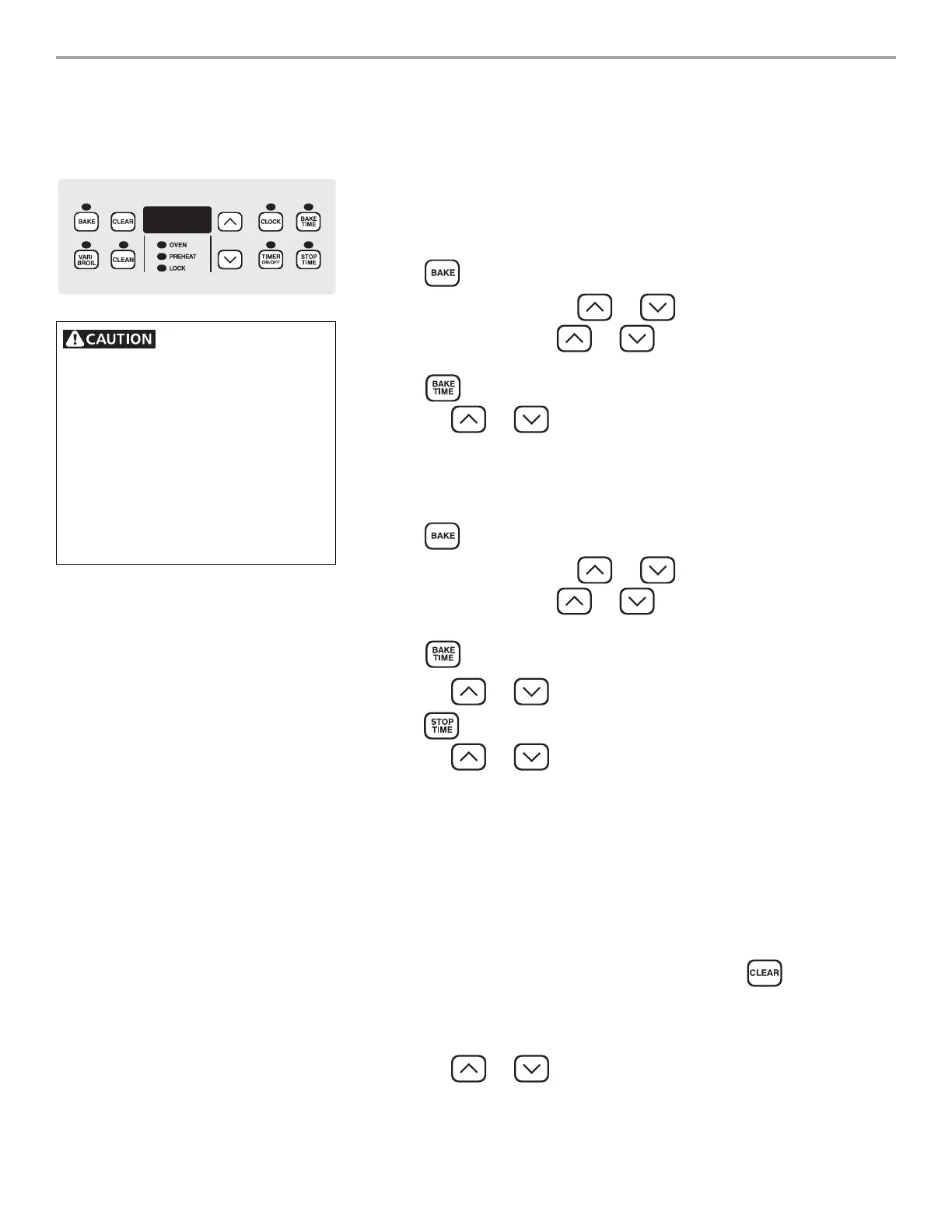 The BAKE TIME and STOP TIME controls operate the Timed Bake feature.