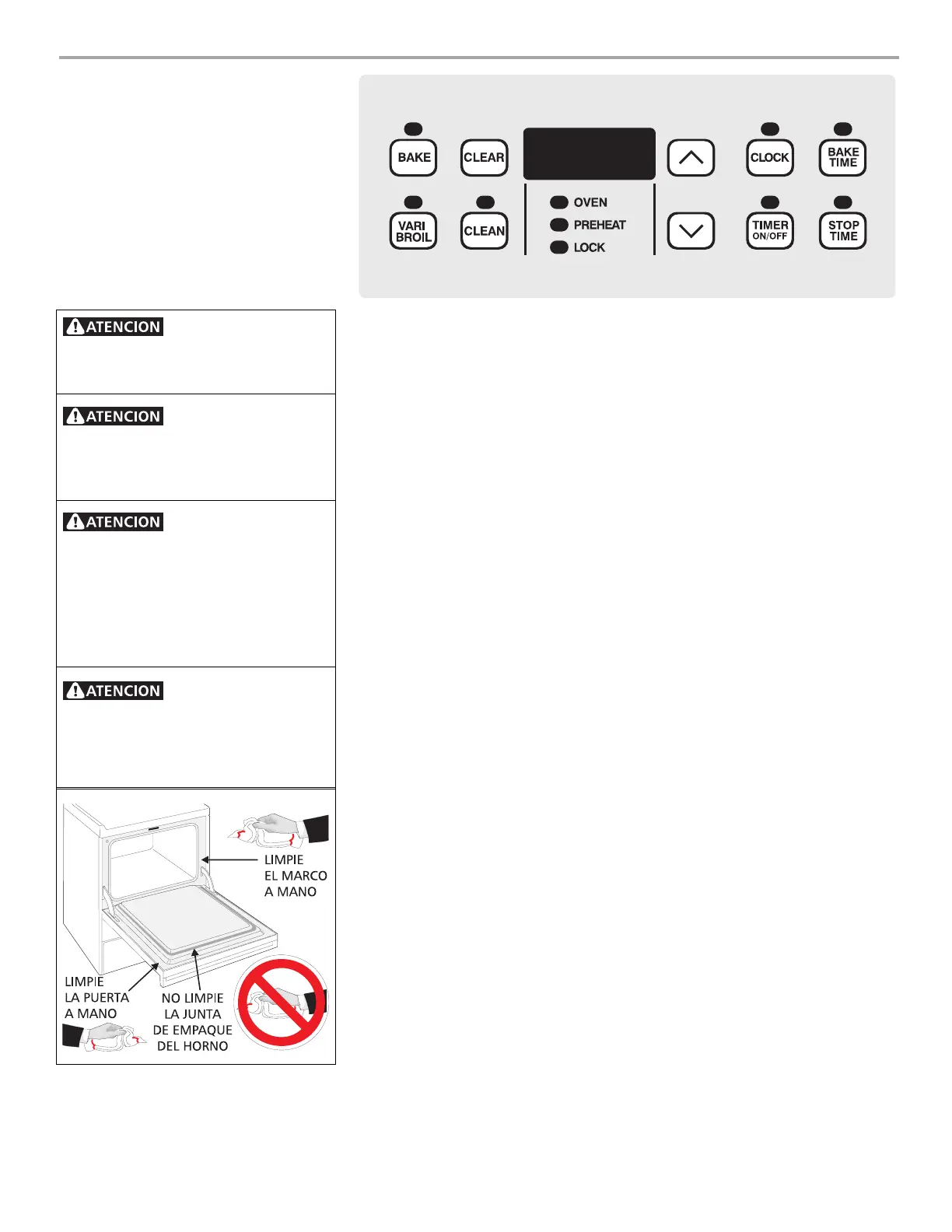 •NO limpie la junta de la puerta del horno. El material tejido de la junta de la puerta del