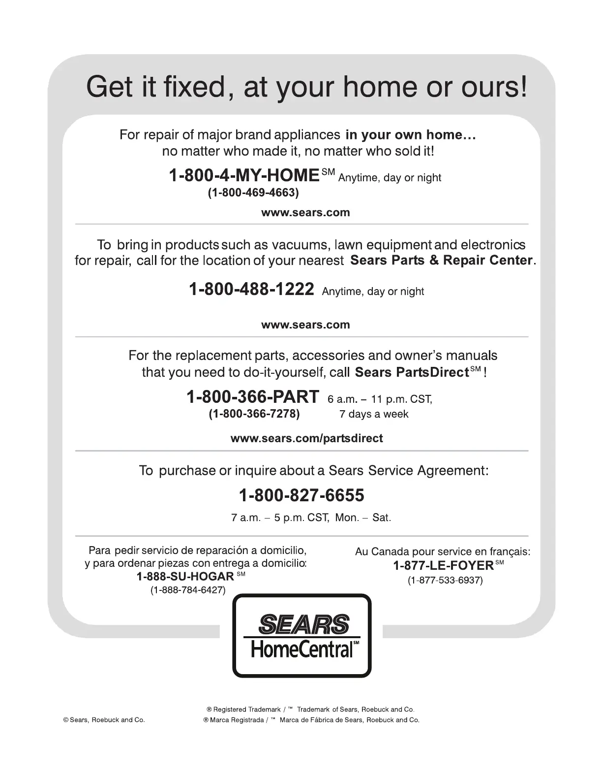 Kenmore 790 - Sears Servico