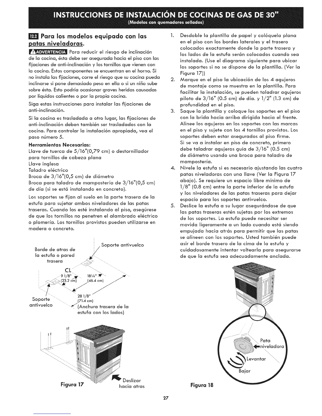patas niveladoras con una Ilave (Ver la Ficjura 17
