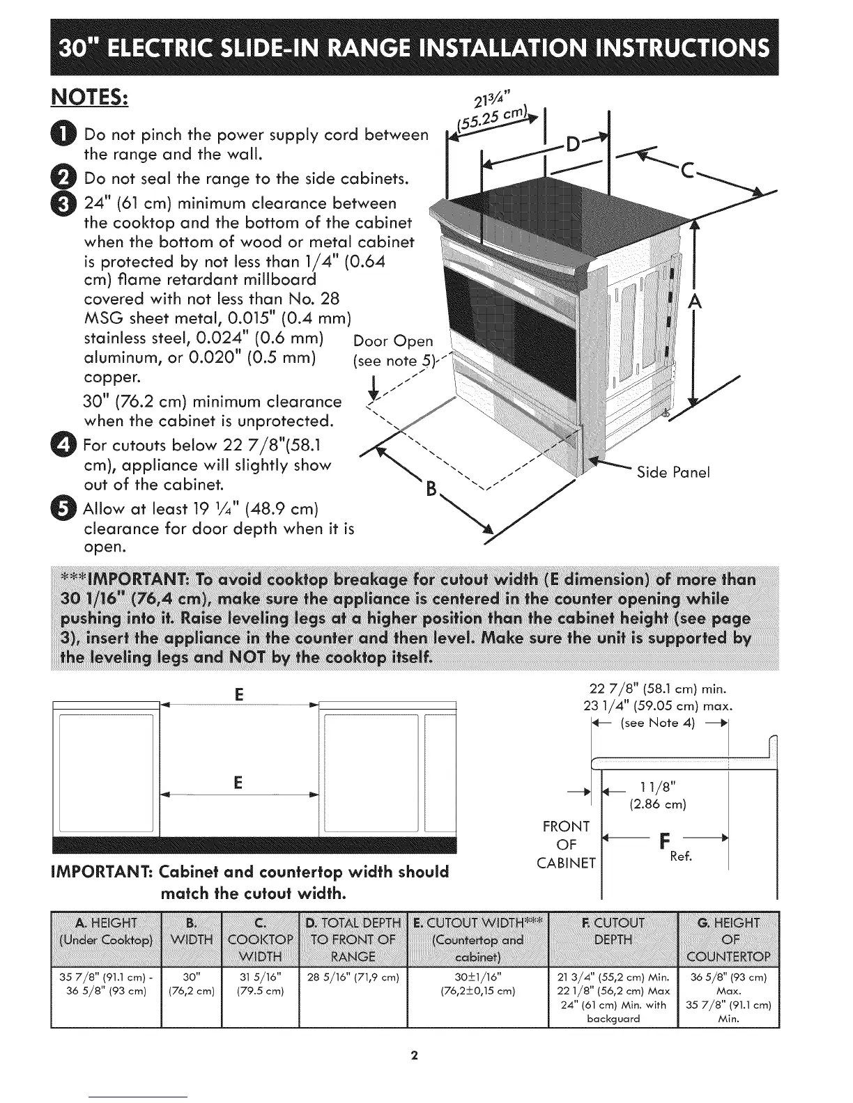 For cutouts below 22 7/8"(58.1