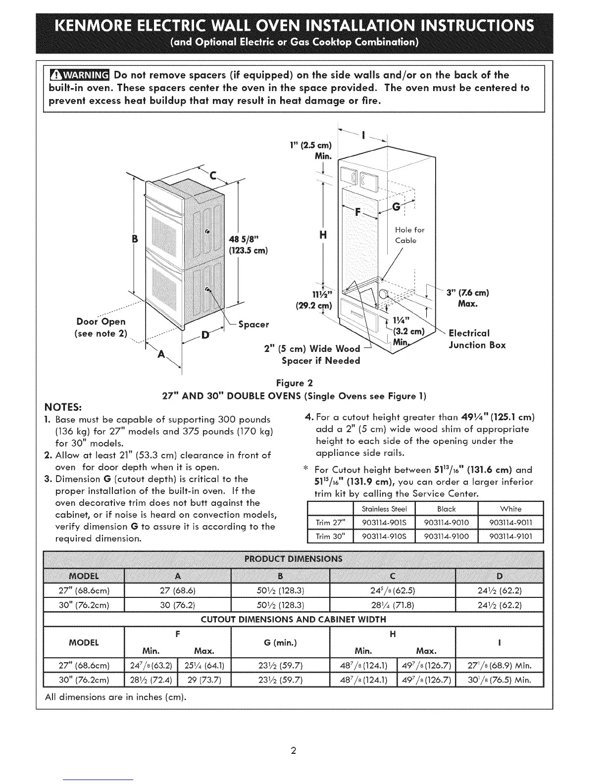 27" AND 30" DOUBLE OVENS (Single Ovens see Figure 1)