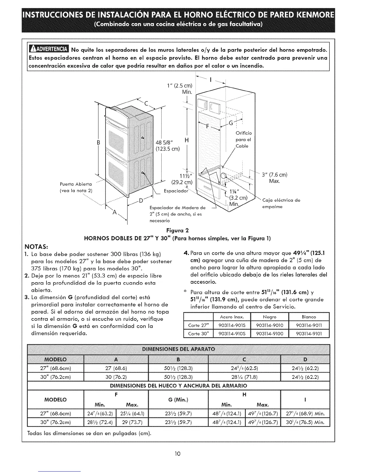 HORNOS DOBLES DE 27" Y 30" (Para hornos slmples, vet la Figura 1)