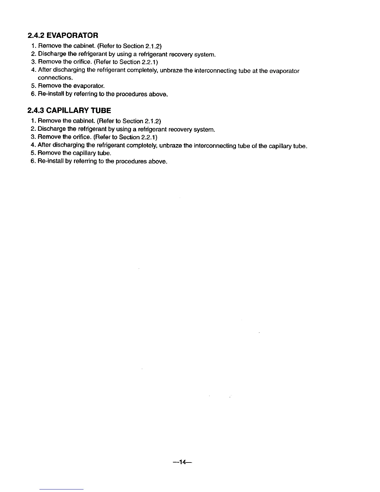 4. After discharging the refrigerant completely, unbraze the interconnecting tube at the evaporator
