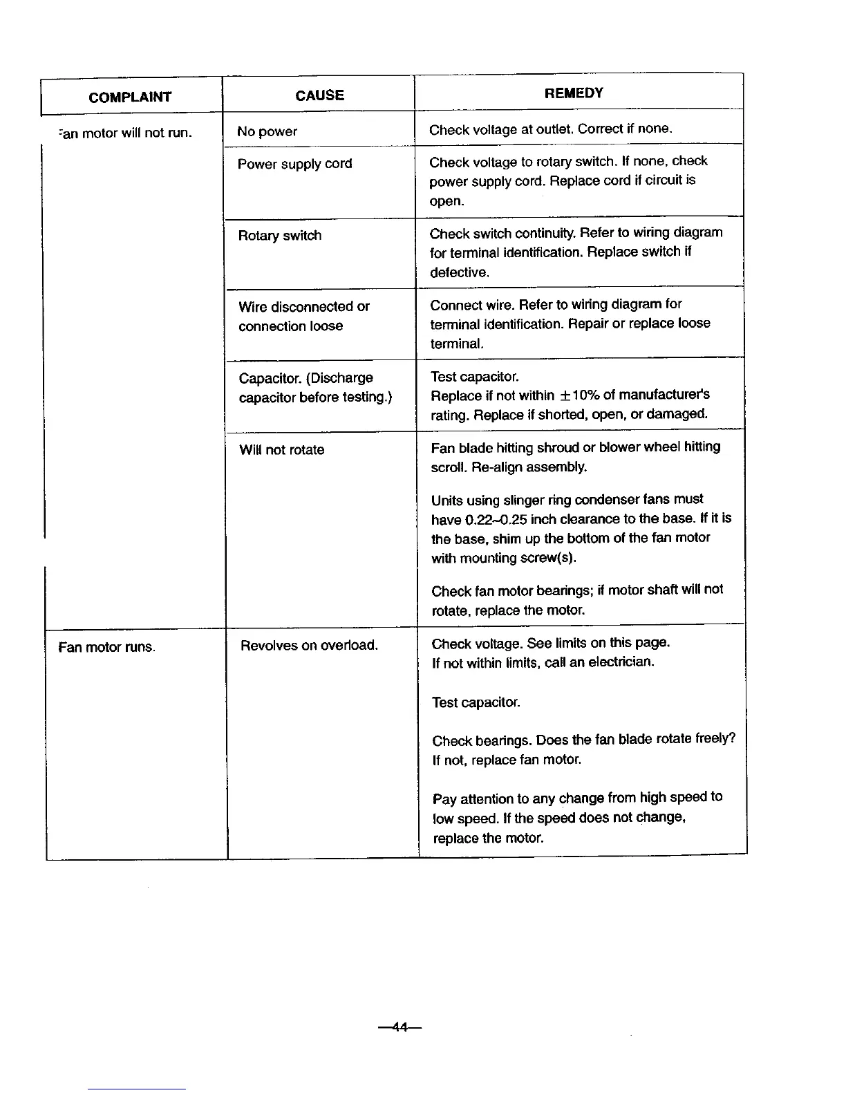Check fan motor bearings; if motor shaft willnot