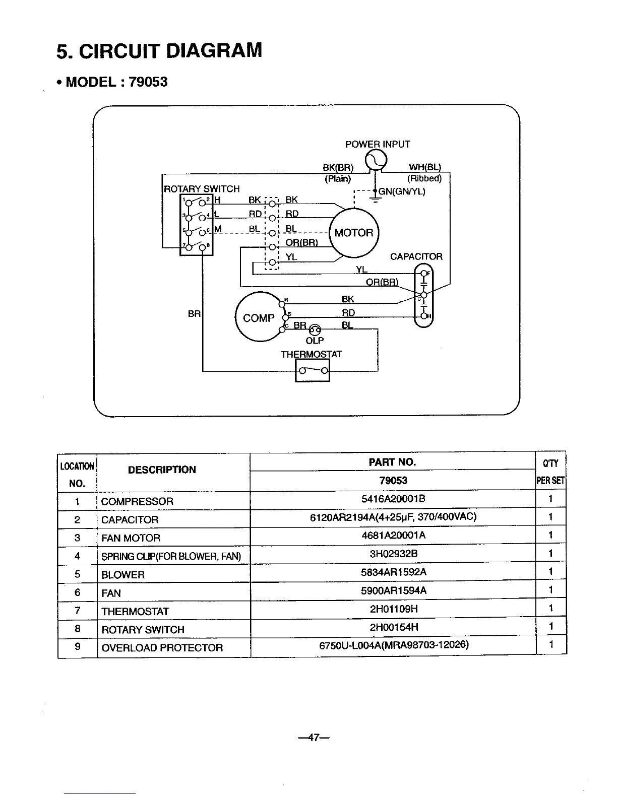 Kenmore 79053 - 5 Circuit Diagram; Model: 79053