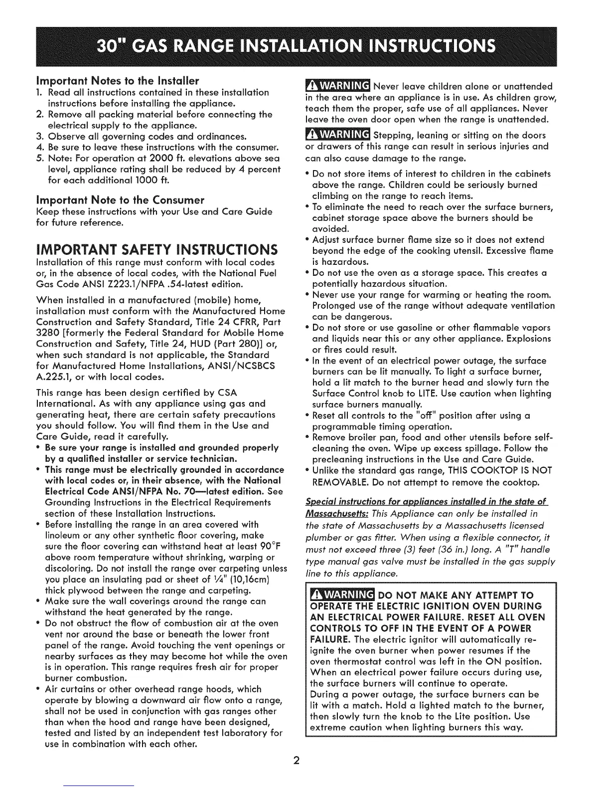 * Unlike the standard gas range, THIS COOKTOP IS NOT