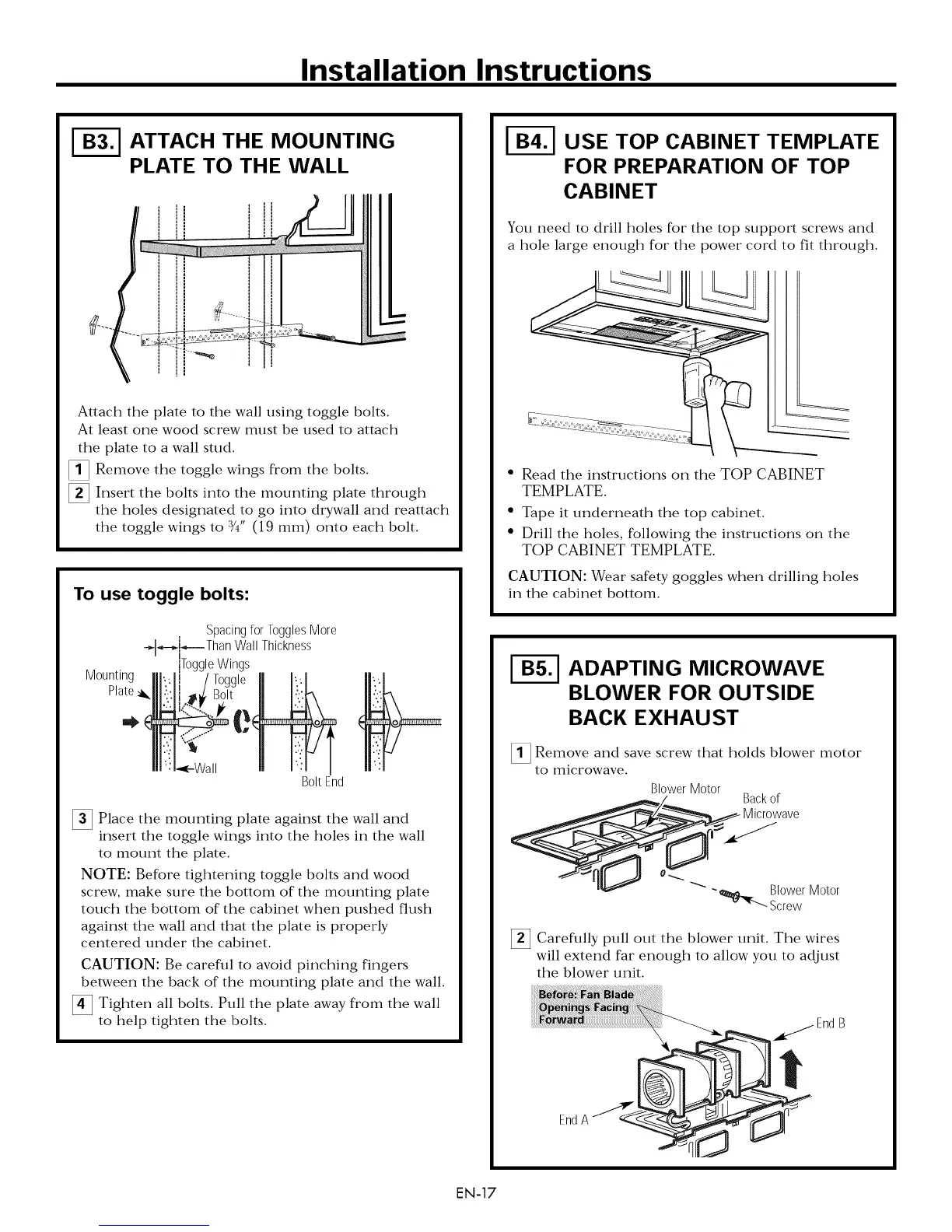 Kenmore 79080322310 - B3. Attach the Mounting Plate to the Wall; B4. Use Top Cabinet Template for Preparation of Top Cabinet; B5. Adapting Microwave Blower for Outside Back Exhaust