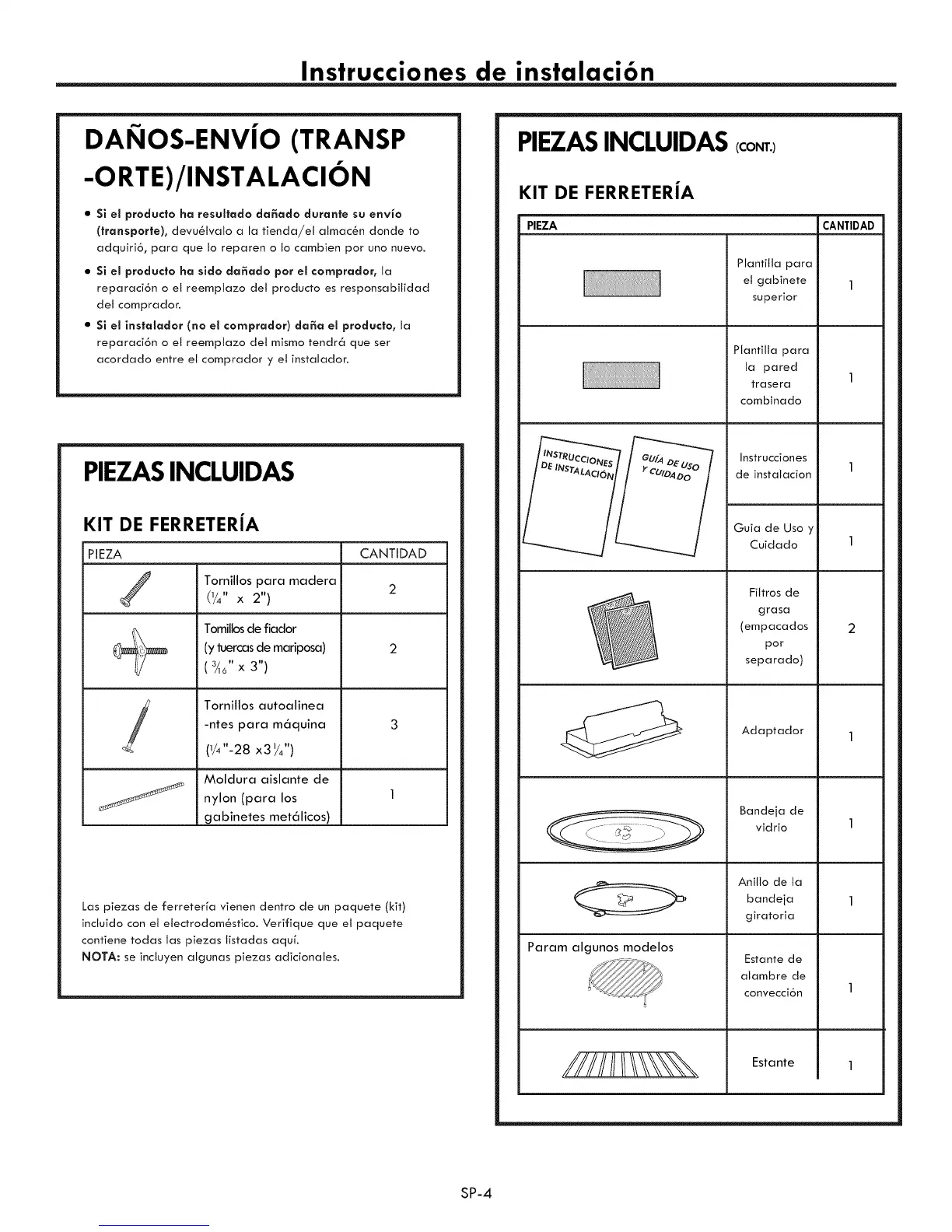 Las piezas de ferreterfa vienen dentro de un paquete (kit)