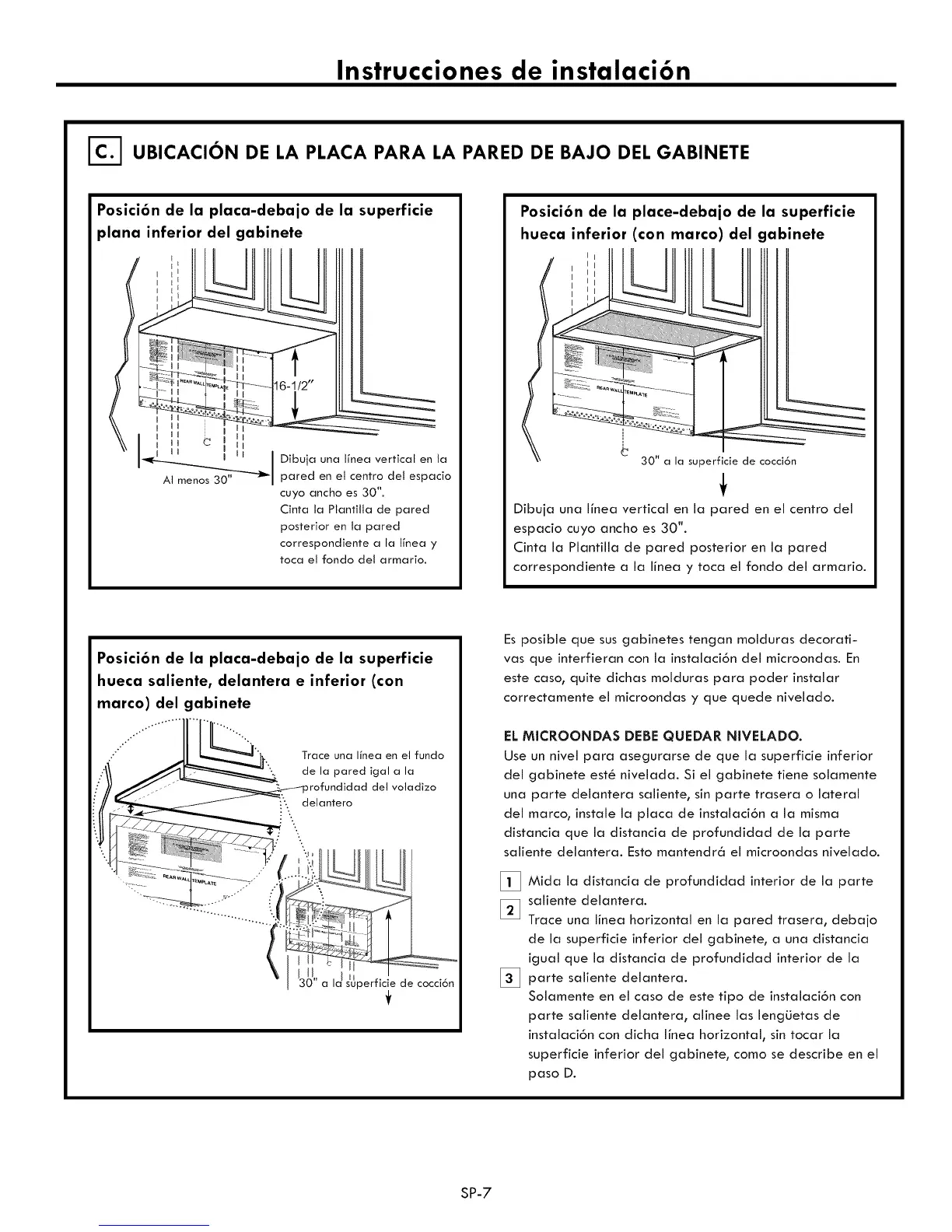 I_] UBICACI6N DE LA PLACA PARA LA PARED DE BAJO DEL GABINETE