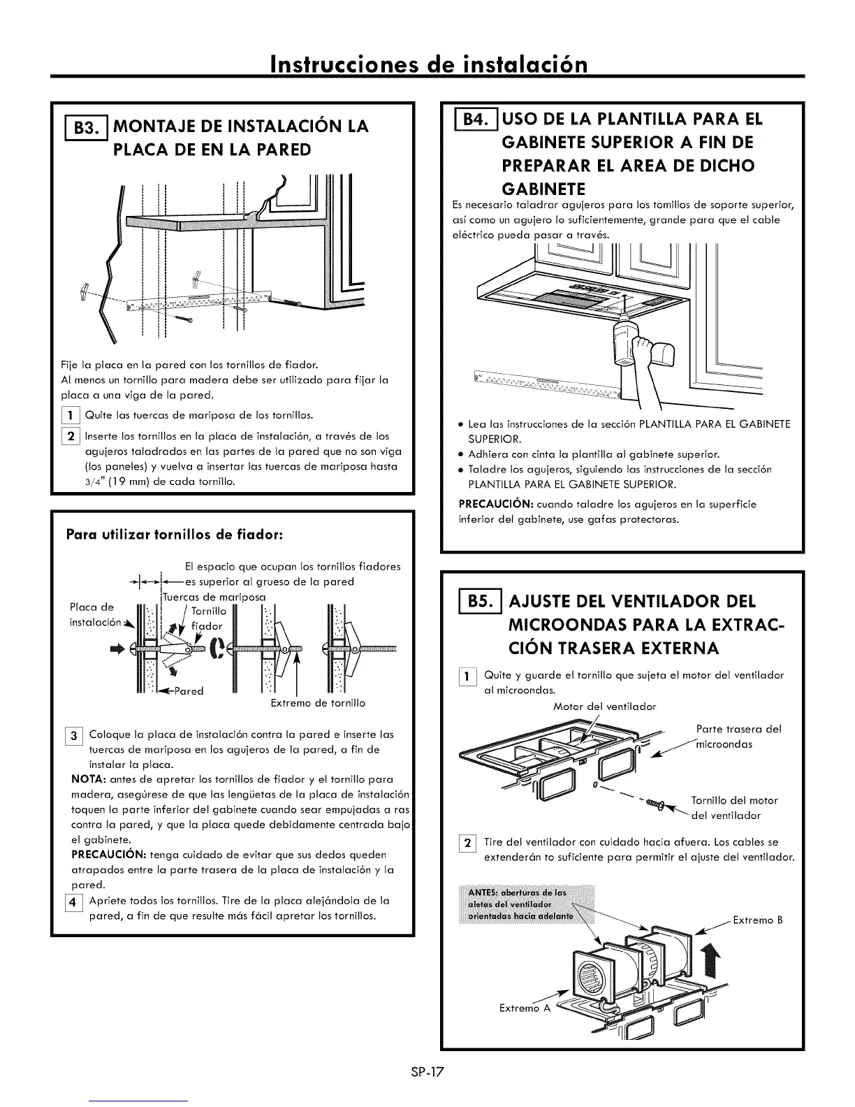 • Lea las instrucciones de la secci6n PLANTILLA PARA EL GABINETE