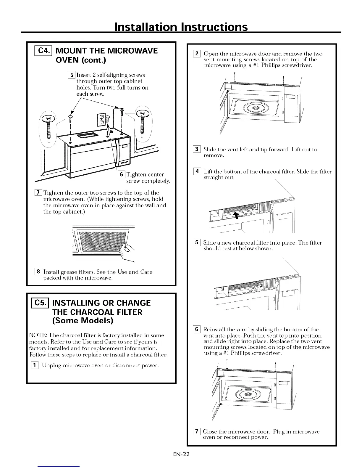 Follow these steps to replace or install a charcoal filter.