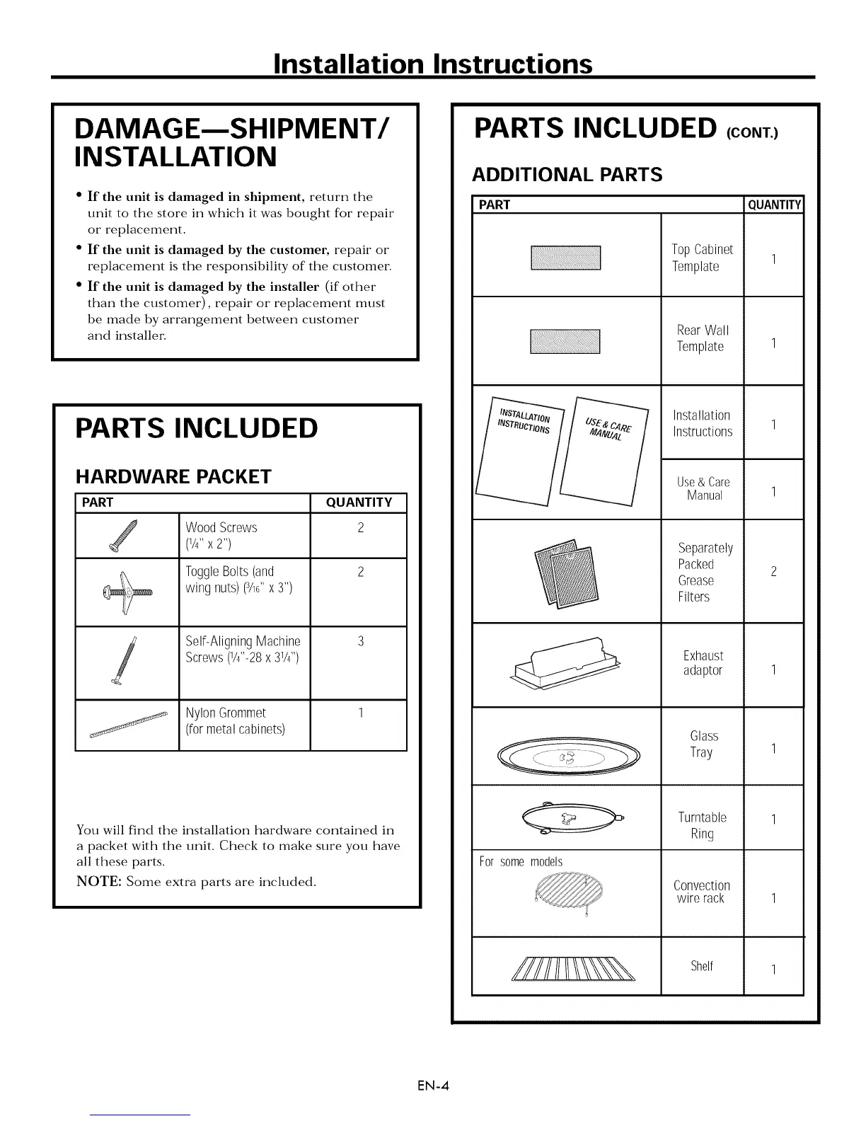 Kenmore 79080363310 - Damage - Shipment;Installation; Parts Included