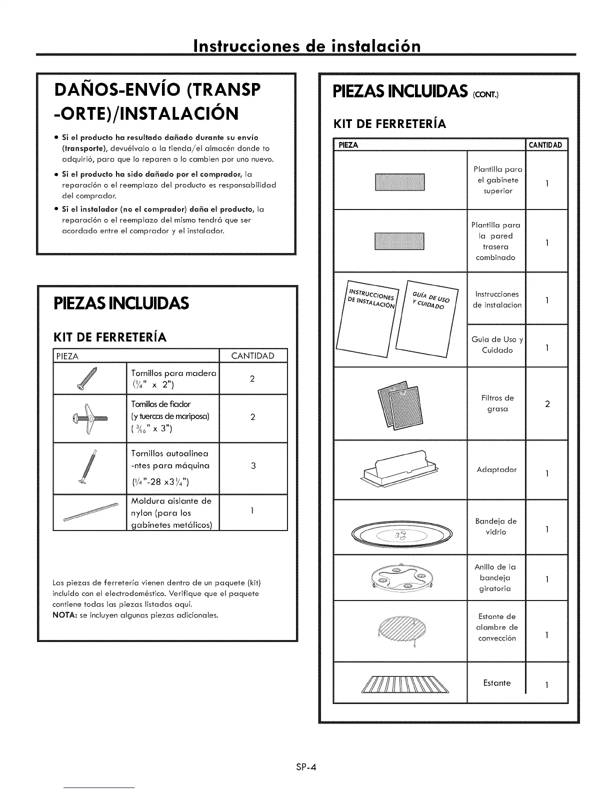 Las piezas de ferreterfa vienen dentro de un paquete (kit)