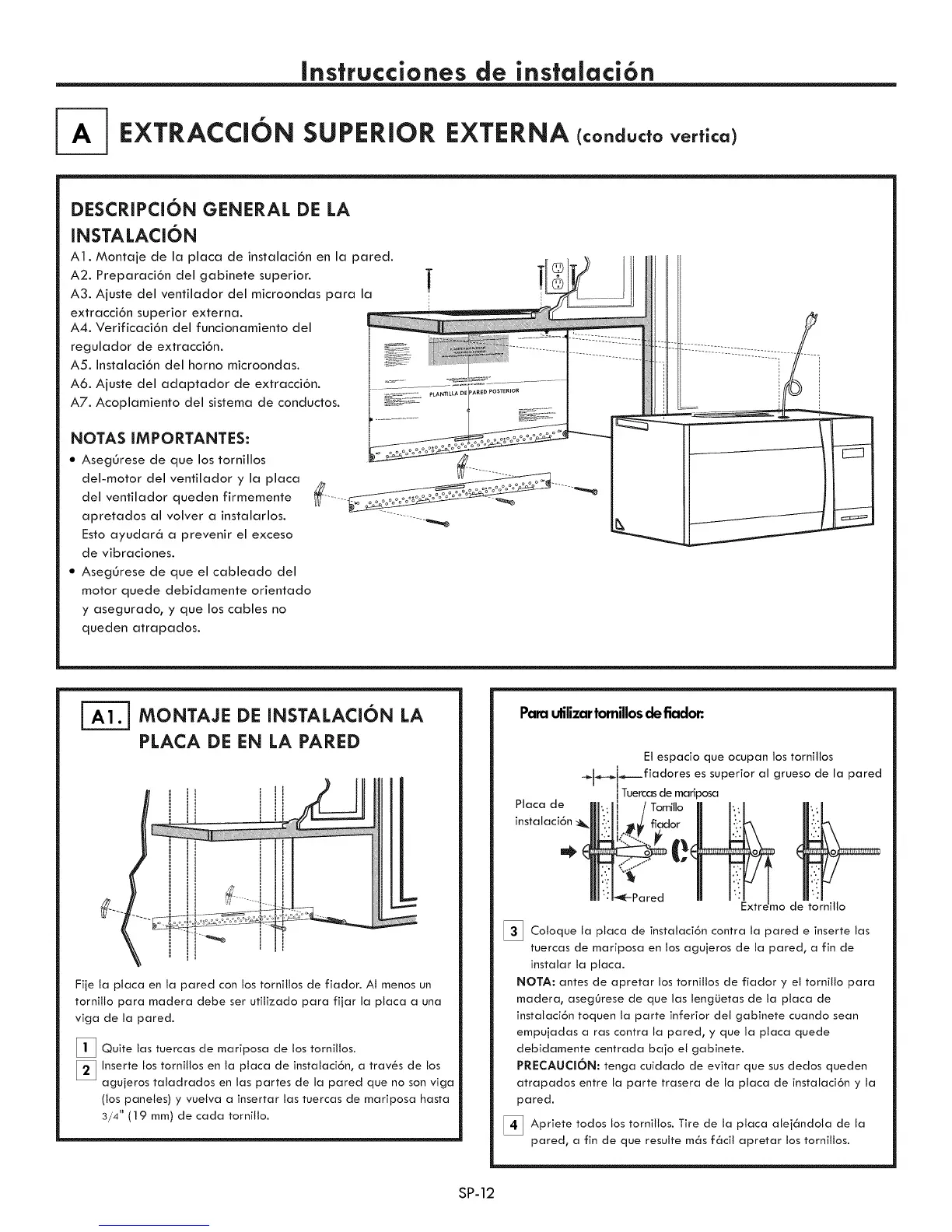 A1. Montaje de la placa de instalaci6n en la pared.