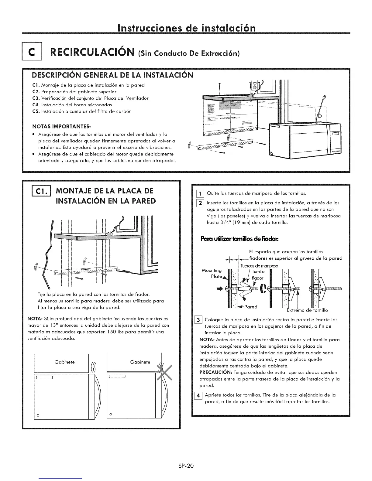 atrapados entre la parte trasera de la placa de instalaci6n y la
