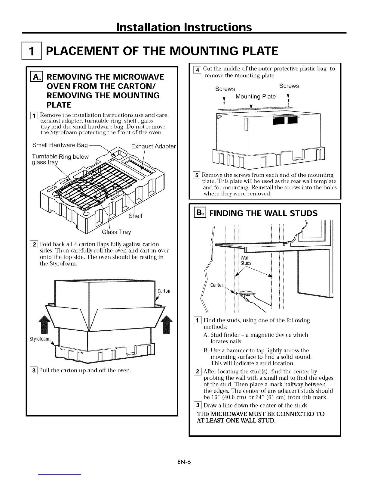 be 16" (40.6 cm) or 24" (61 cm) from this mark.