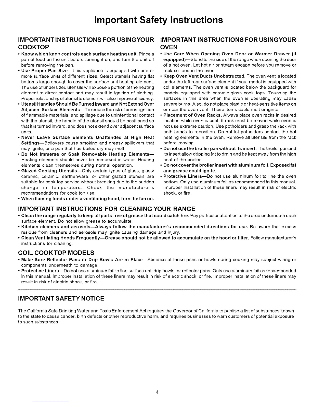 IMPORTANT INSTRUCTIONS FOR CLEANING YOUR RANGE
