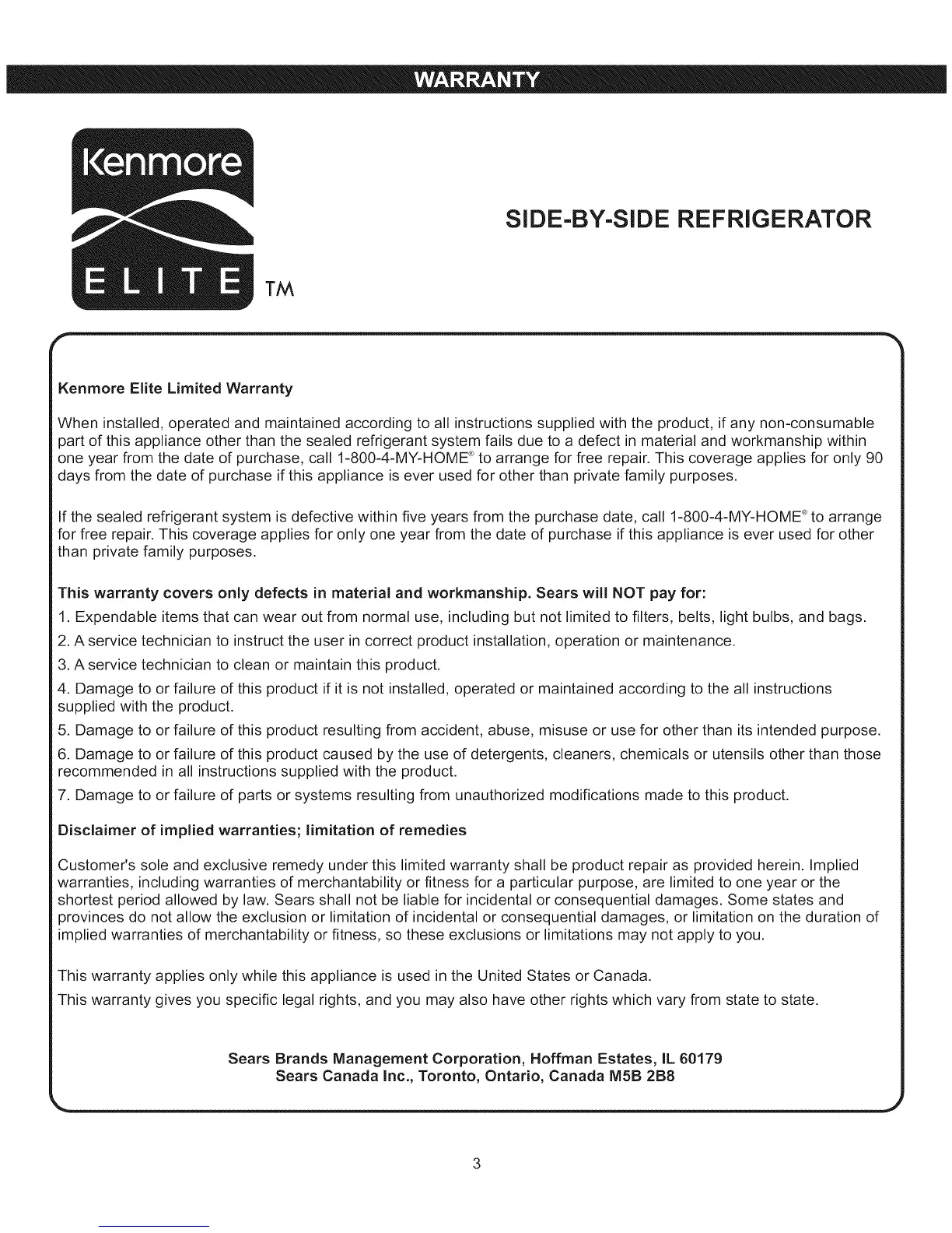 If the sealed refrigerant system is defective within five years from the purchase date, call 1-800-4-MY-HOME ®to arrange