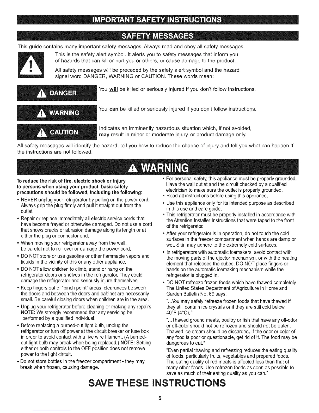 = NEVER unplug your refrigerator by pulling on the power cord.