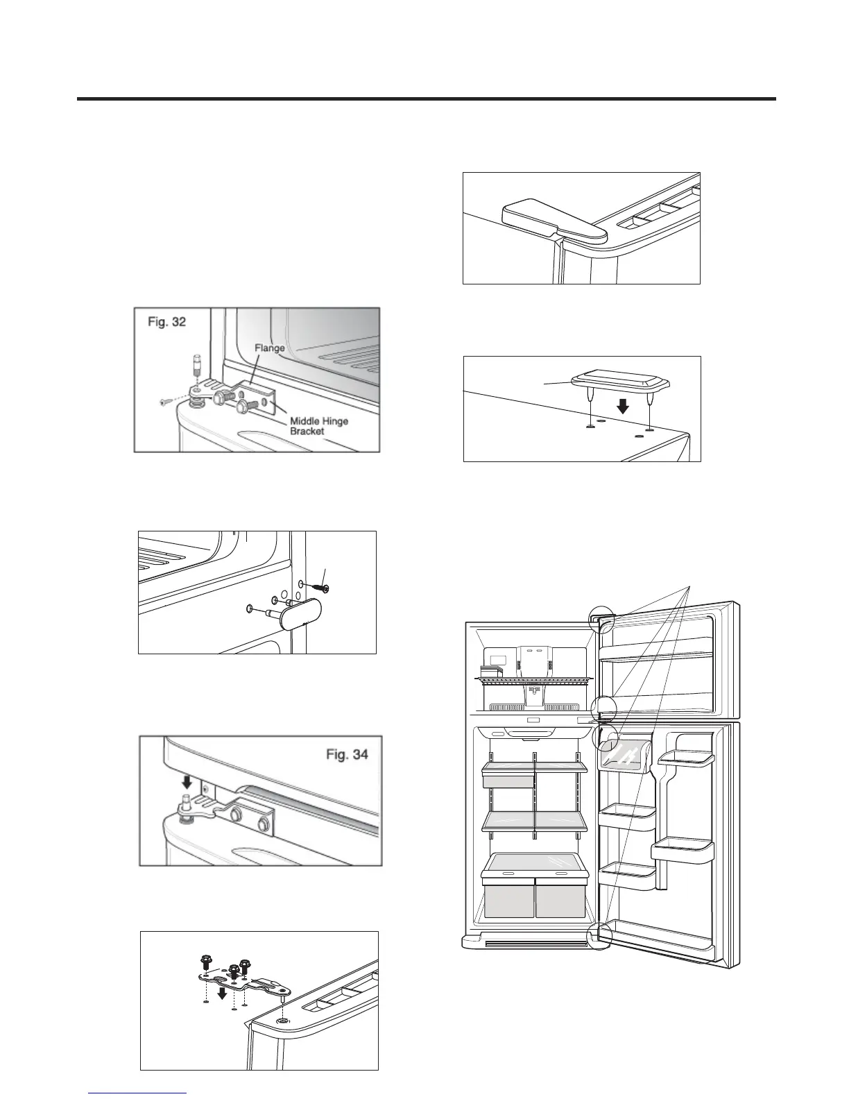 • Place washer between refrigerator door and middle hinge