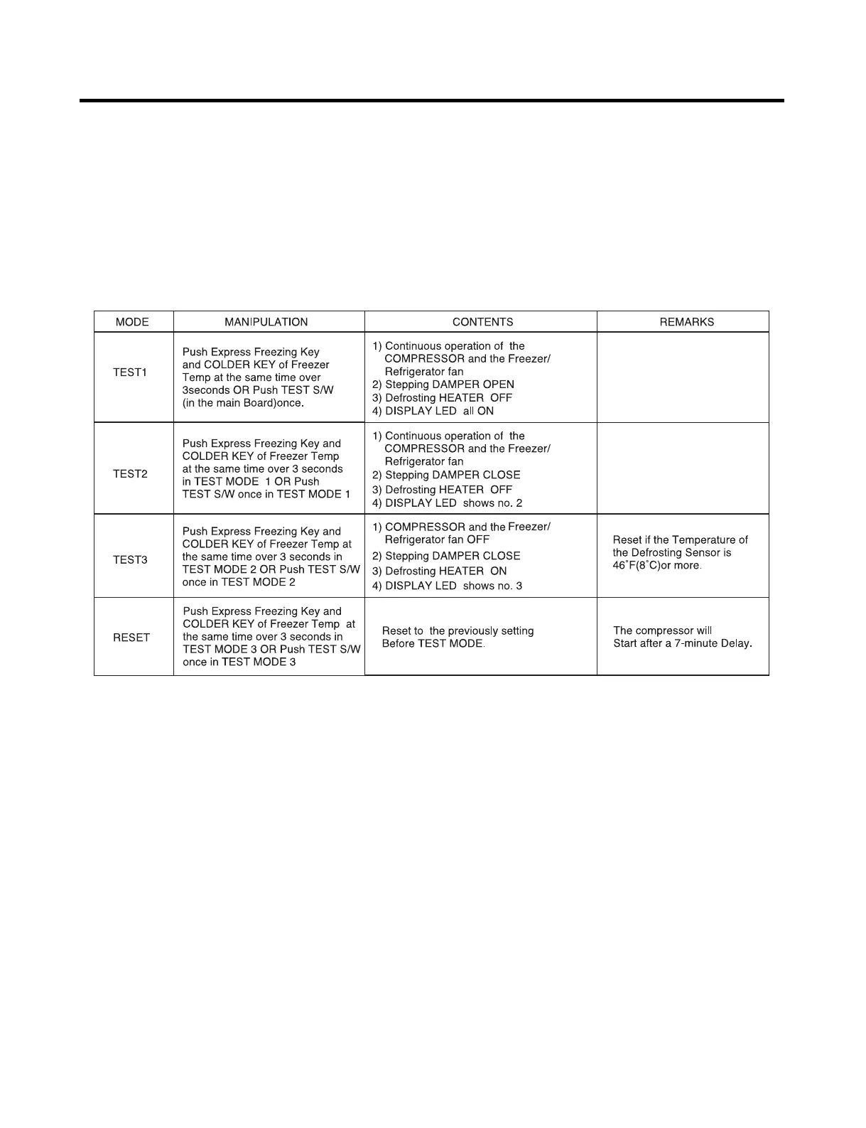 4. After exiting the test mode, be sure to reset by unplugging and then plugging in the appliance.