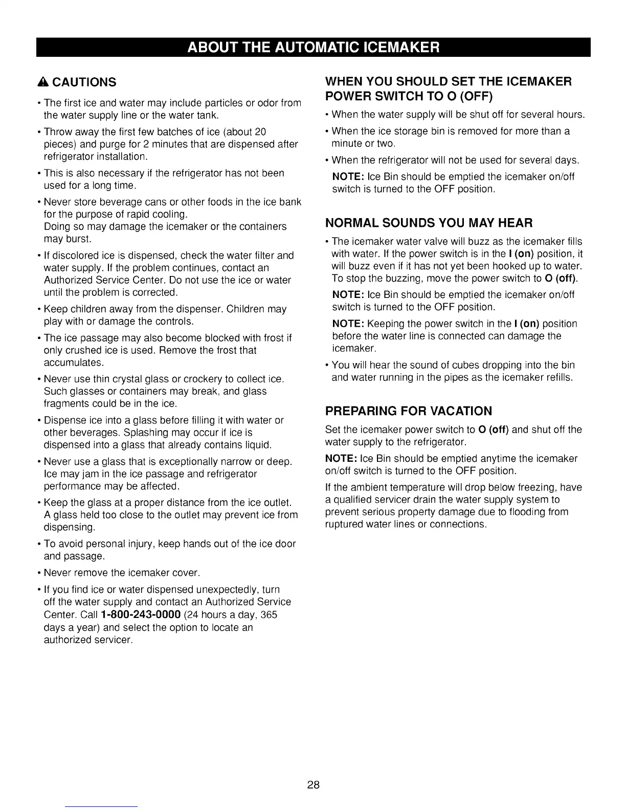 NOTE: Ice Bin should be emptied the icemaker on/off