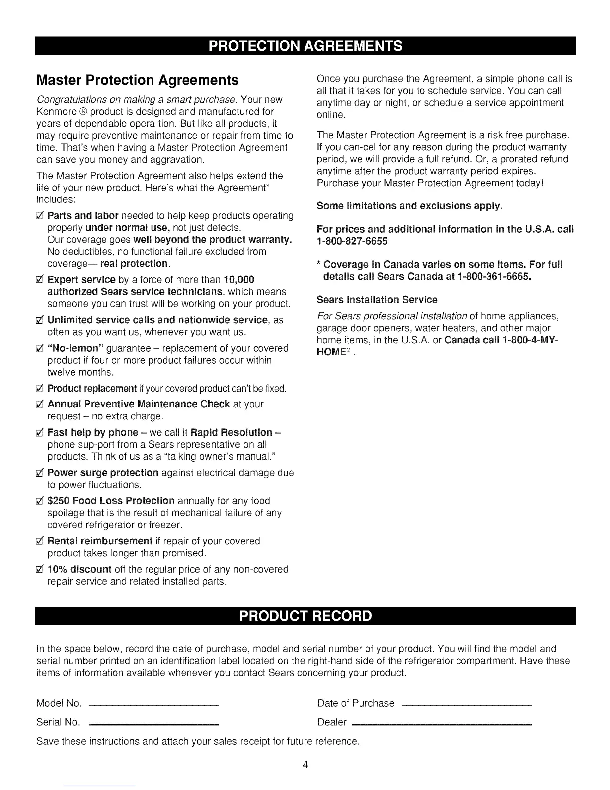phone sup-port from a Sears representative on all