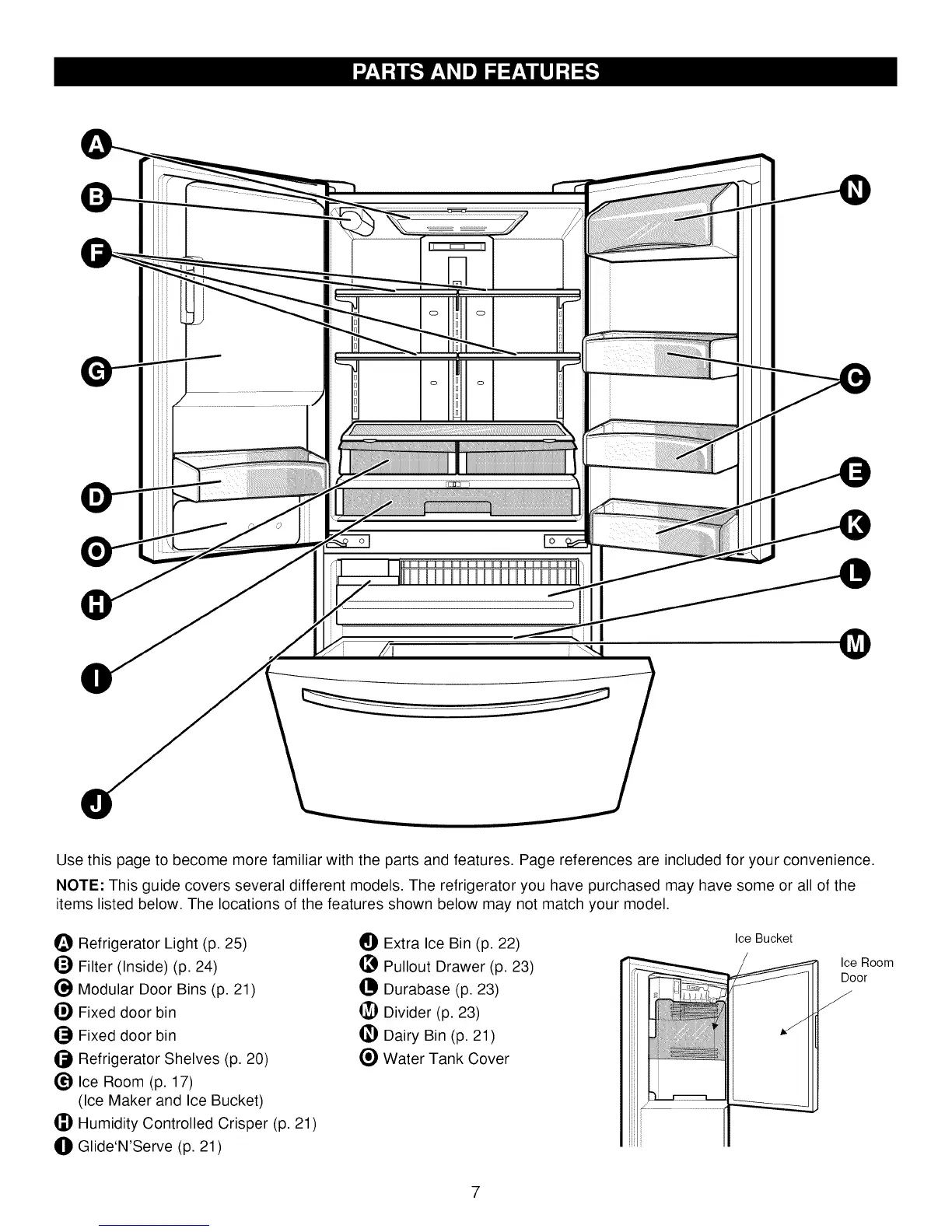 NOTE: This guide covers several different models. The refrigerator you have purchased may have some or all of the