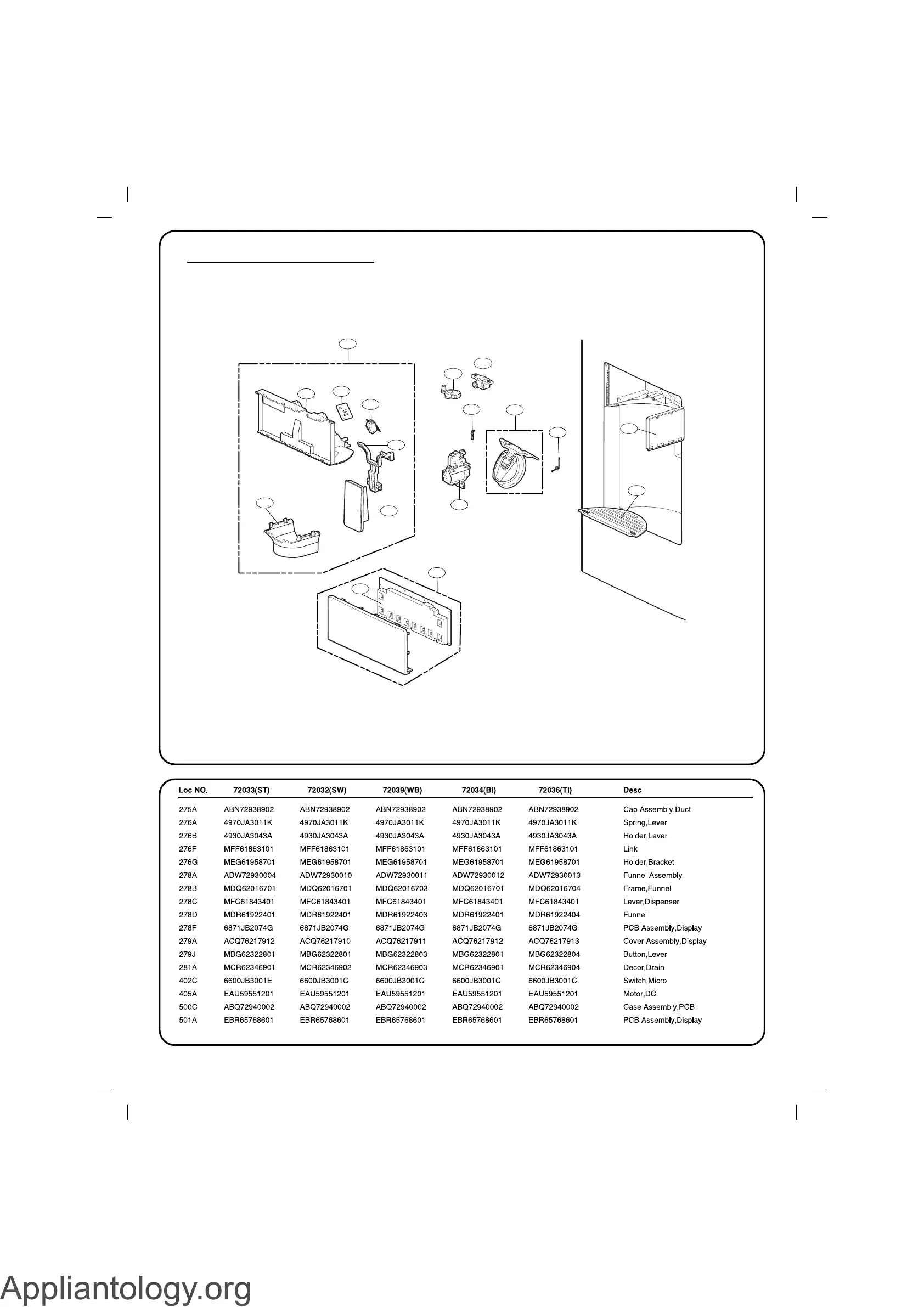 Kenmore 795.72032 - Dispenser Parts Diagram and Listing