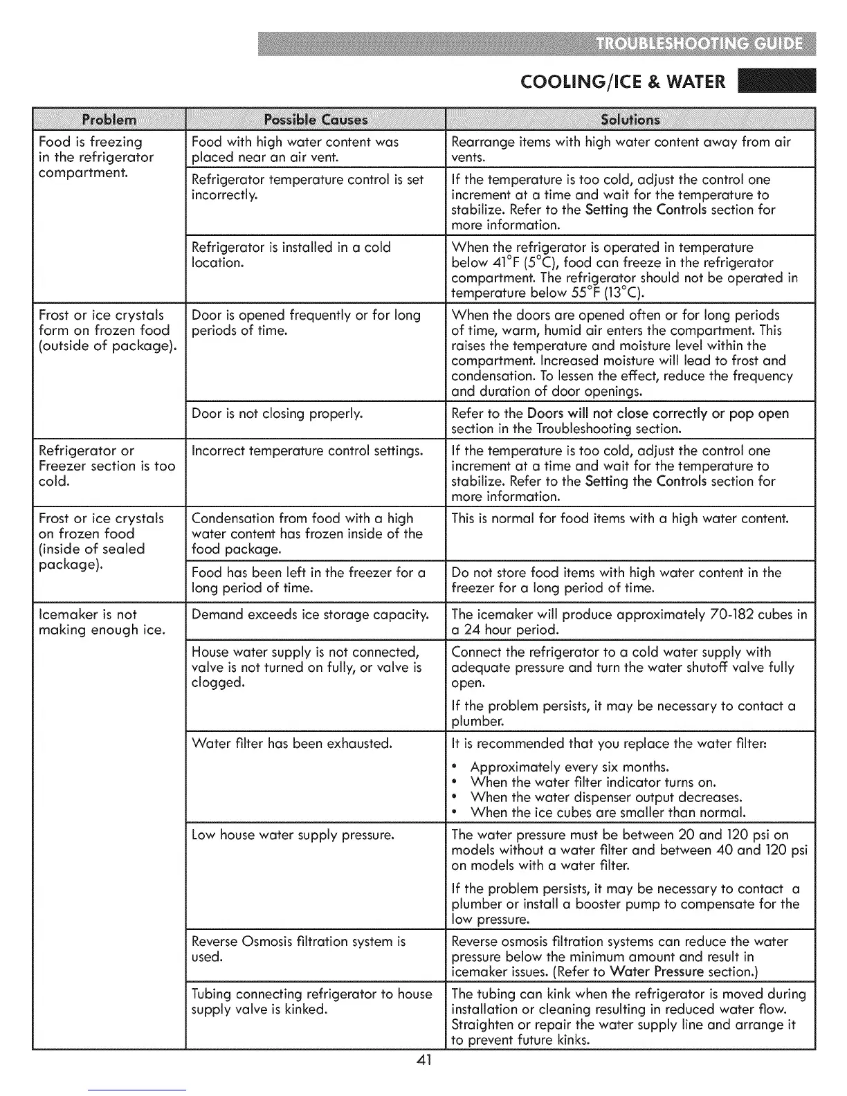 icemaker issues. (Refer to Water Pressure section.)