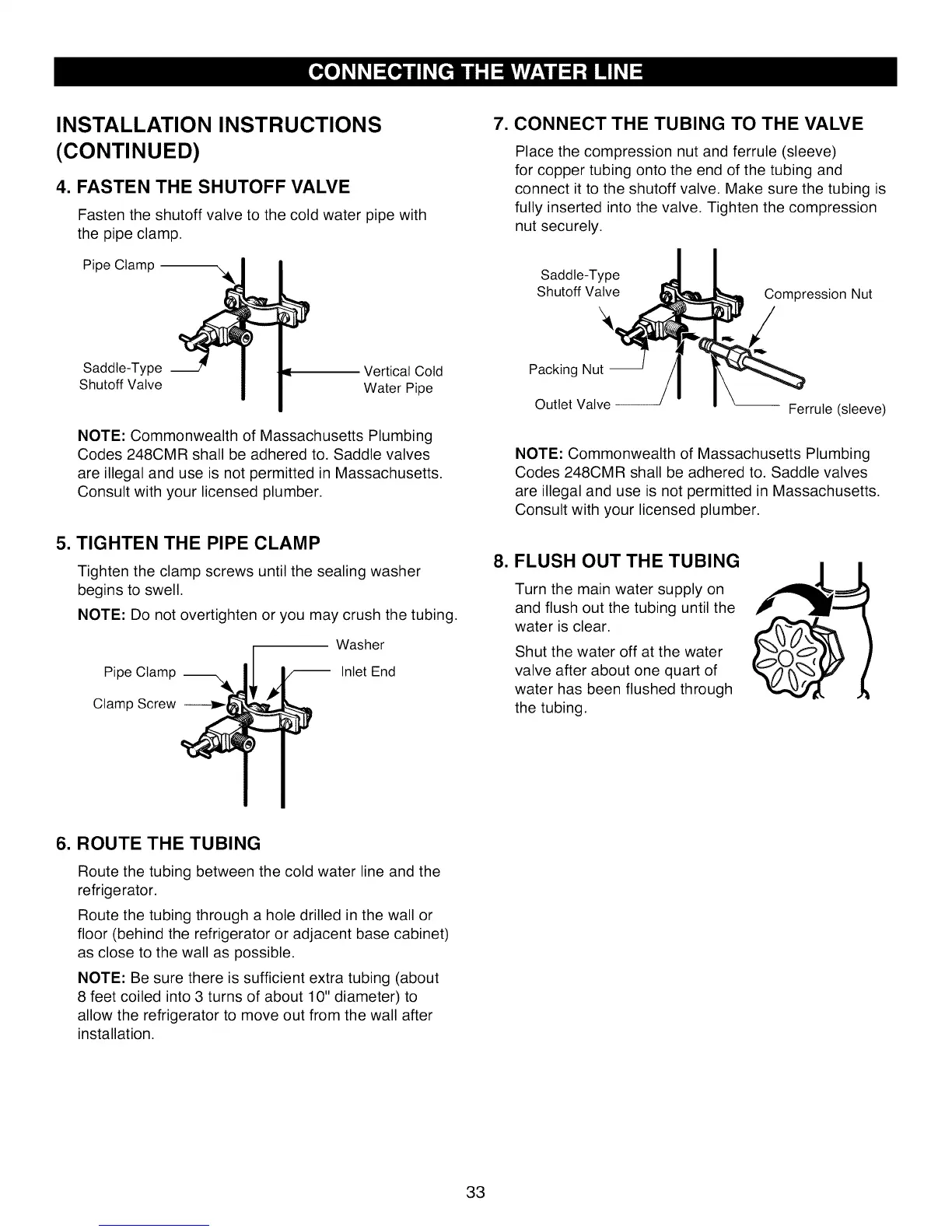 Codes 248CMR shall be adhered to. Saddle valves
