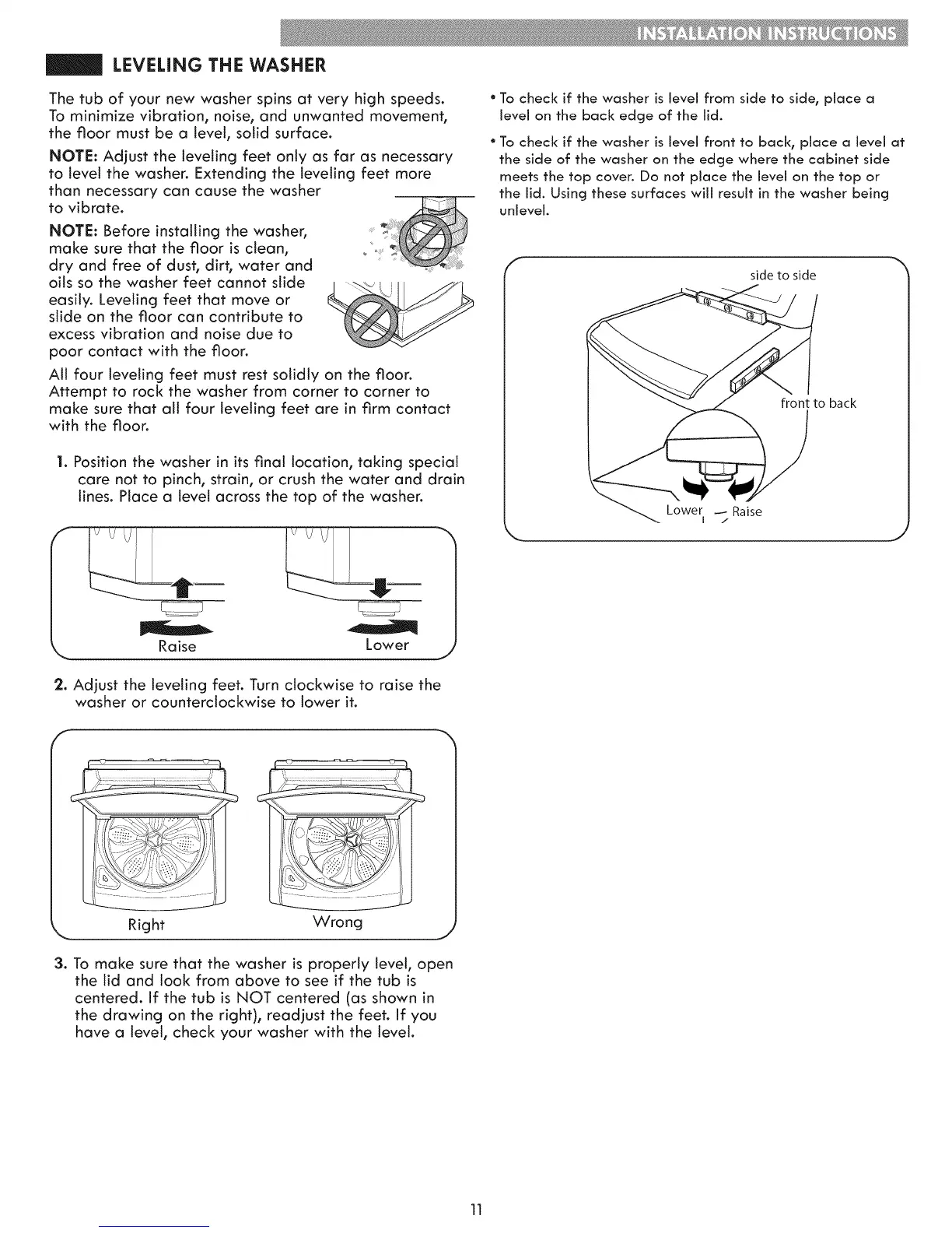 2. Adjust the leveling feet. Turn clockwise to raise the