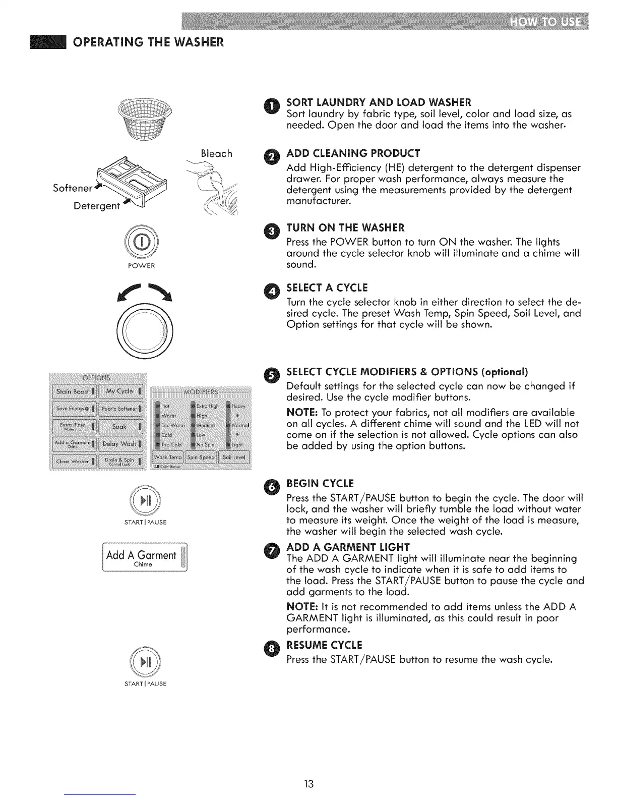OPERATING THE WASHER